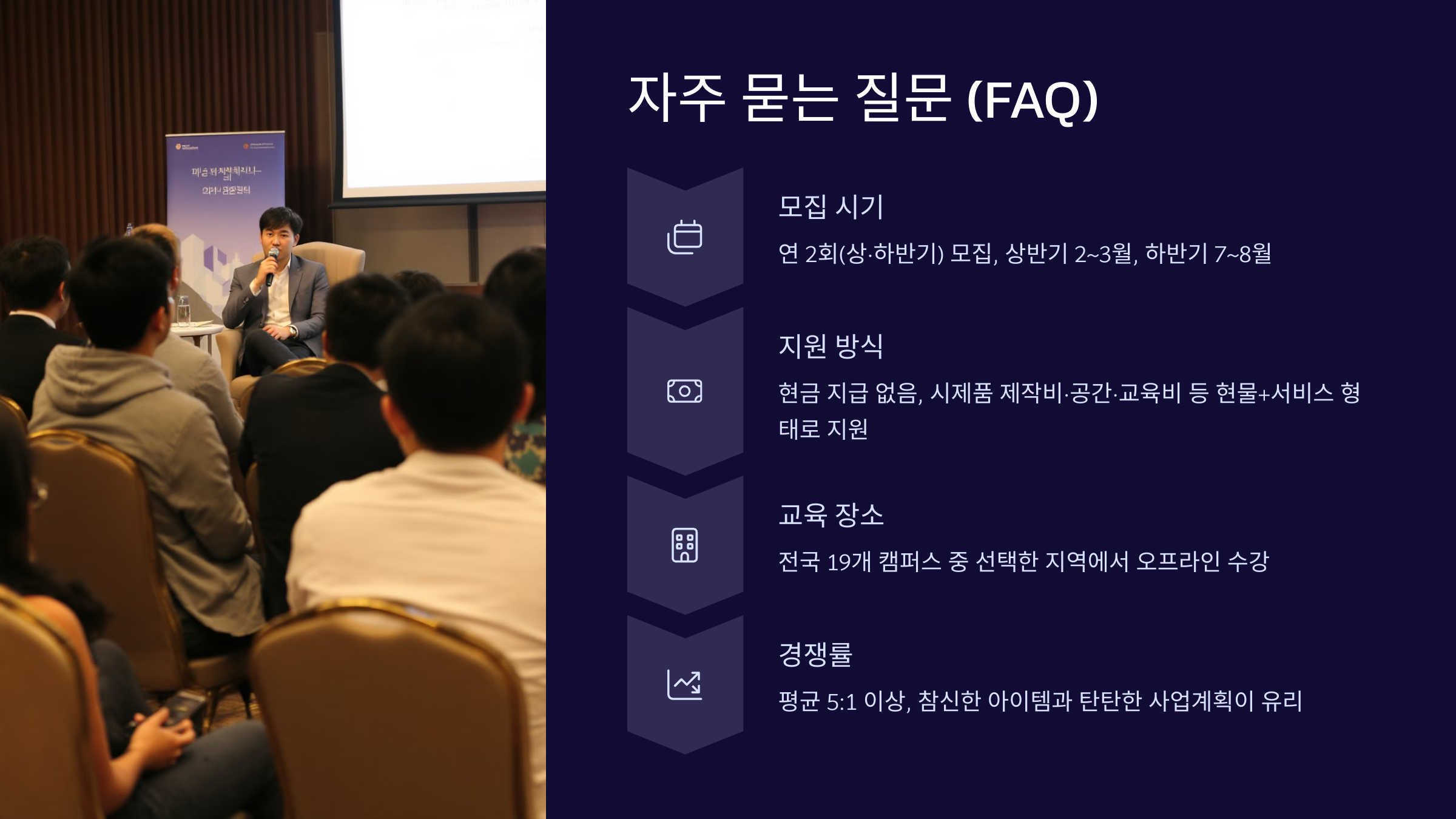 실제로 이 과정을 수료하고 창업에 성공한 사례가 해마다 수백 건에 달한다고 해요. ‘이론보다 실전’을 원하는 분들에게는 정말 꼭 도전해볼 만한 프로그램이에요! 💼