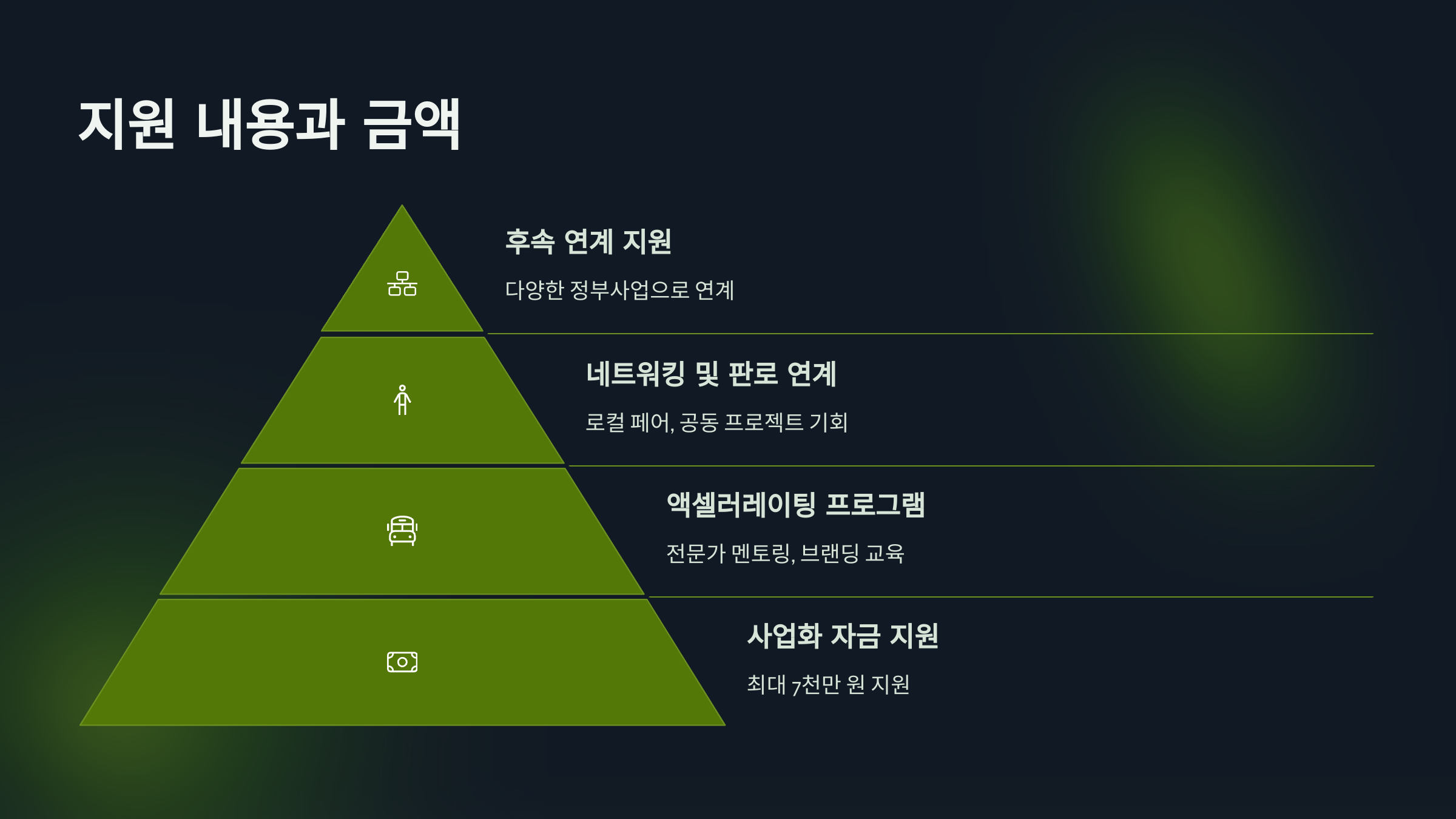 | 사업화 자금 | 제품 제작, 공간 구축, 마케팅 등 | 최대 7,000만 원 |