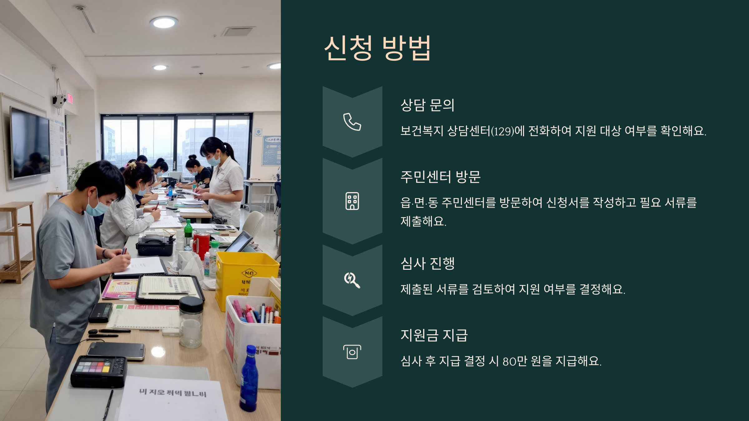 💡 지원 대상에 해당하는지 주민센터나 보건복지 상담센터(129)를 통해 확인해보세요!