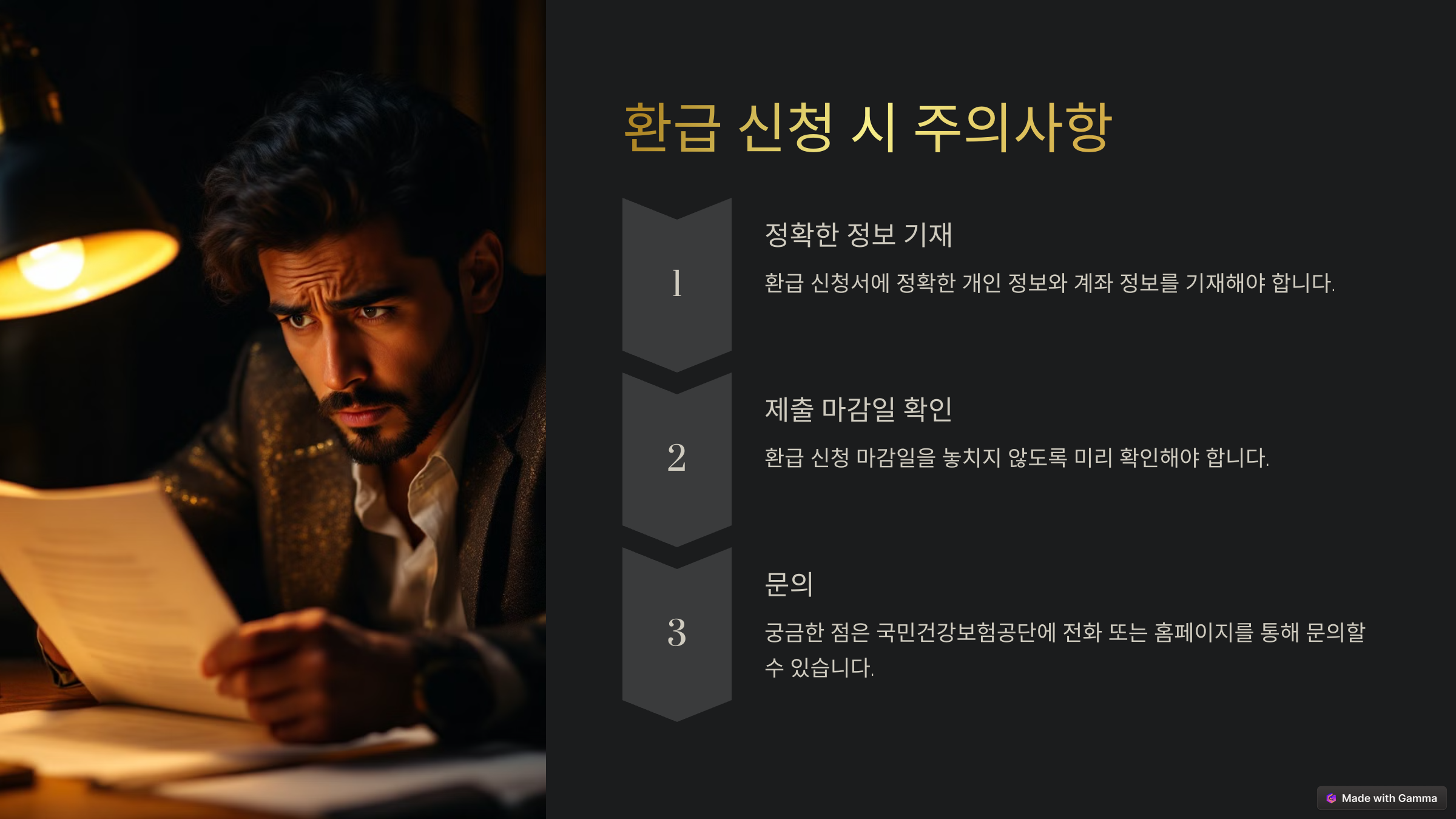 건강보험 환급 신청을 할 때 몇 가지 중요한 사항을 꼭 확인해야 해요.