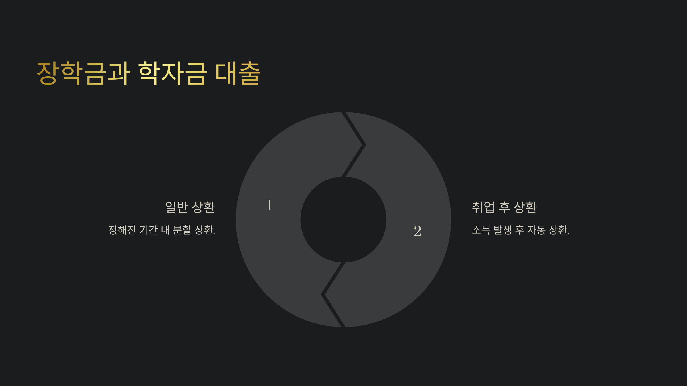 | 일반 상환 학자금 대출 | 대출 후 일정 기간 내에 분할 상환 | 대출 실행 즉시 발생 | 소득과 무관 |