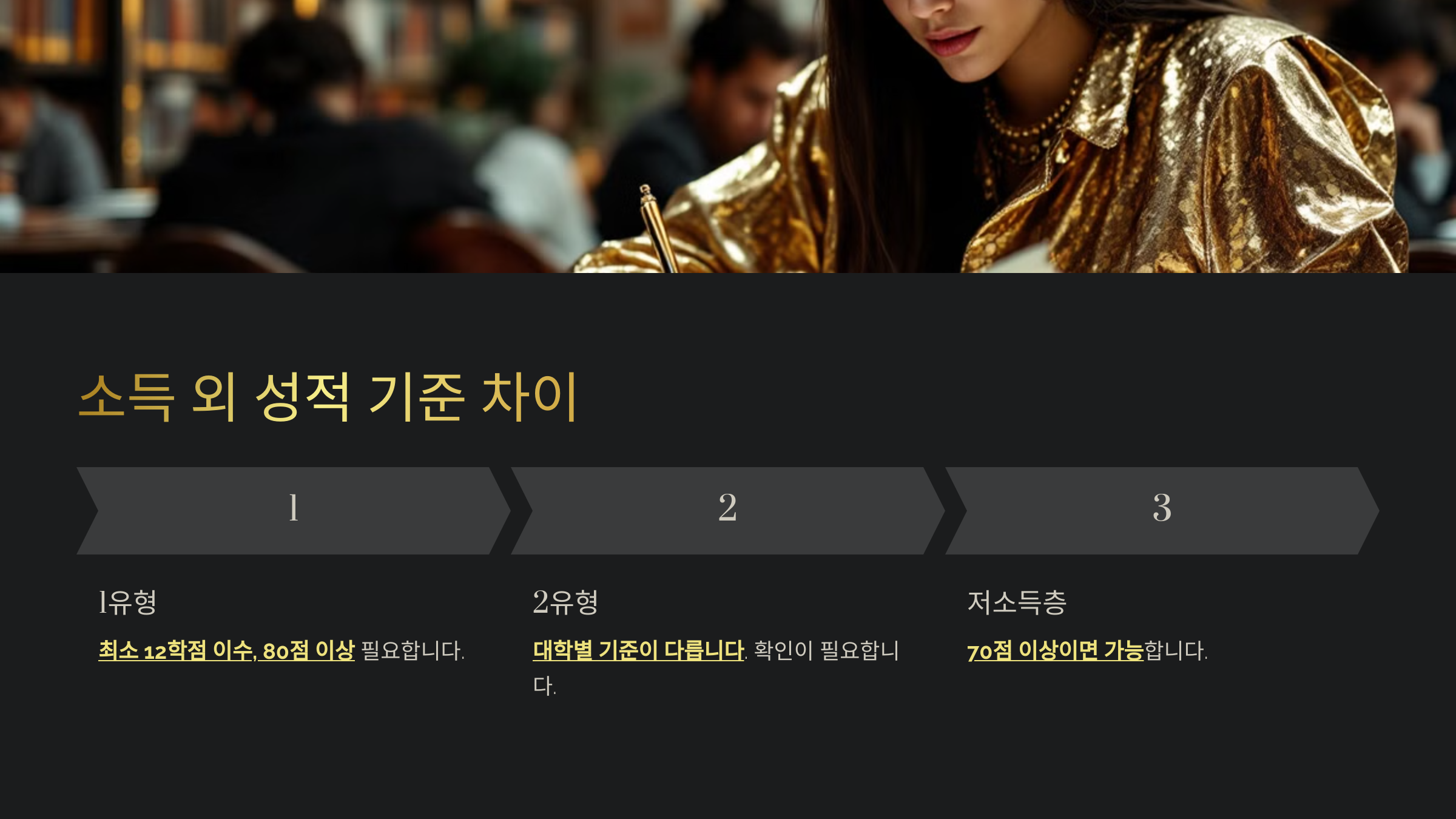 국가장학금은 소득구간만 충족한다고 받을 수 있는 게 아니에요. 일정 성적 기준도 충족해야 장학금을 받을 수 있어요. 기본적으로 1유형과 2유형 모두 성적 기준이 적용되지만, 일부 차이가 있어요.