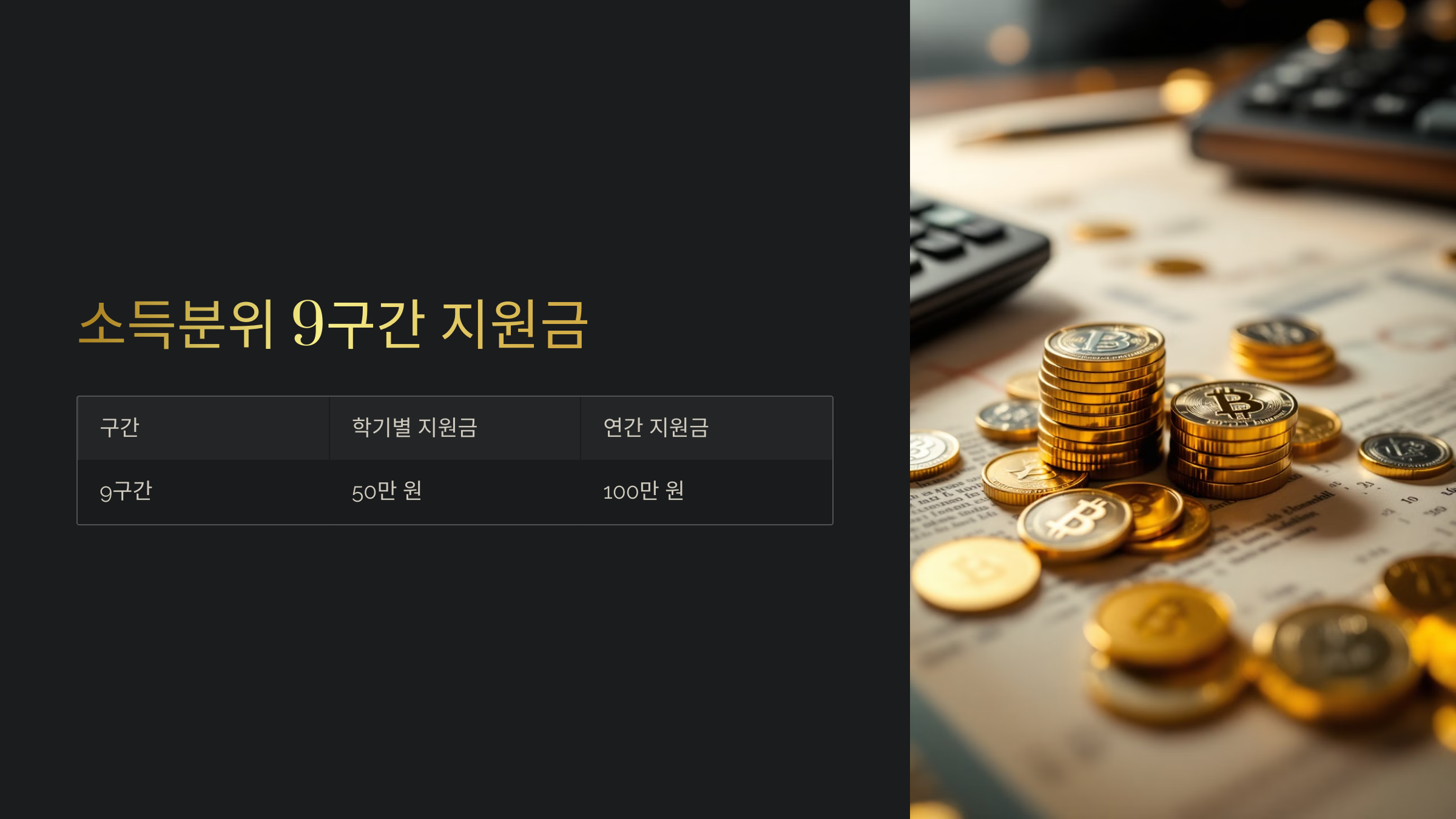 국가장학금 9구간은 2025년부터 새롭게 포함된 구간으로, 학기별 최대 50만 원(연간 100만 원)의 지원을 받을 수 있어요.