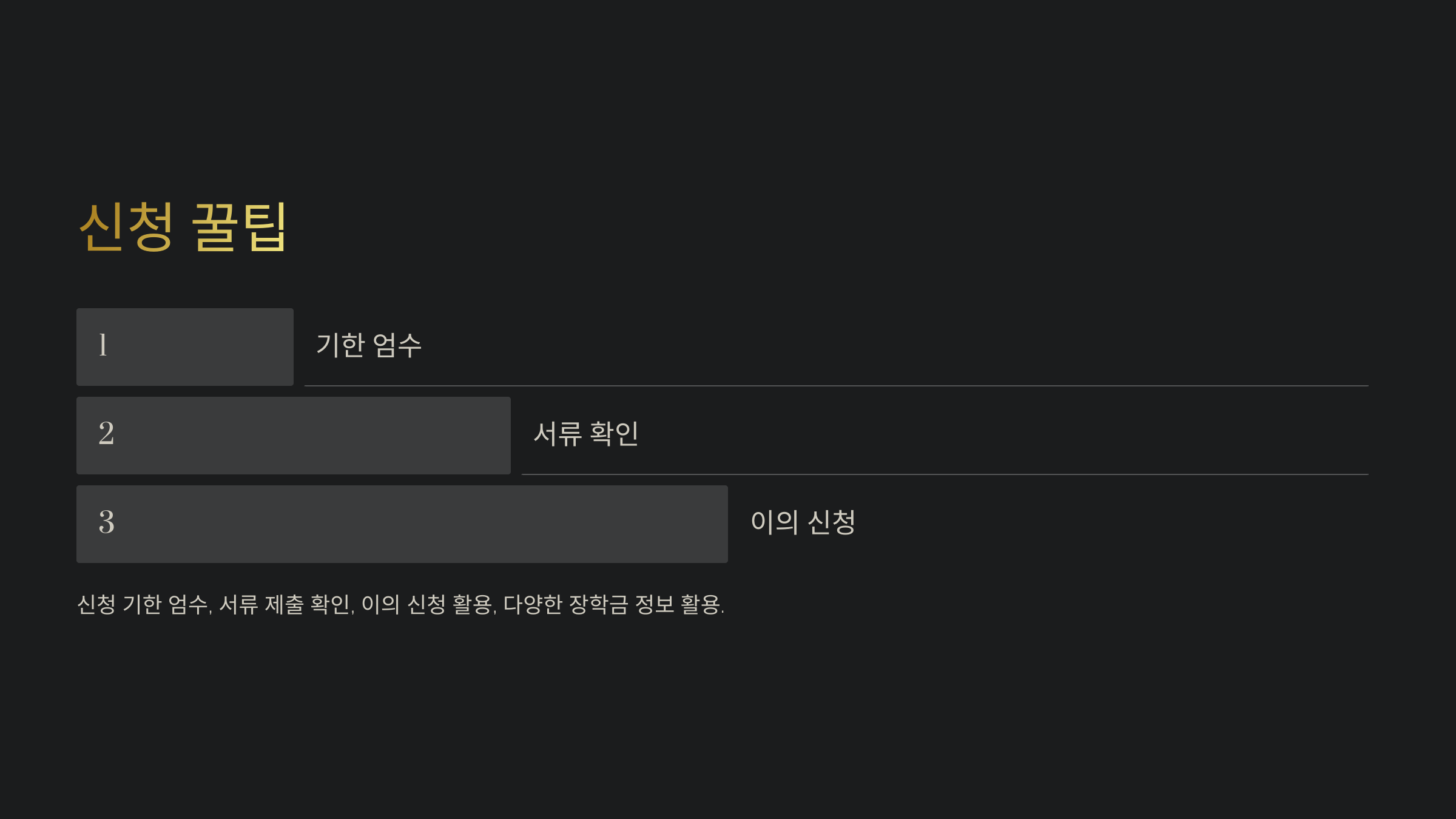 1️⃣ 신청 기한을 절대 놓치지 마세요! 국가장학금은 매 학기별로 신청해야 하며, 기한을 놓치면 구제 신청이 제한적이에요.