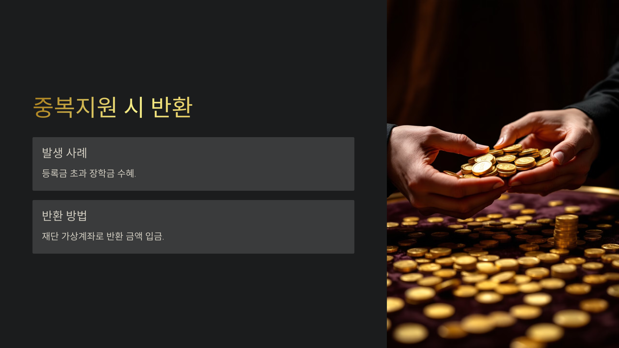 중복지원이 발생하면 등록금을 초과한 학자금을 반환해야 합니다.