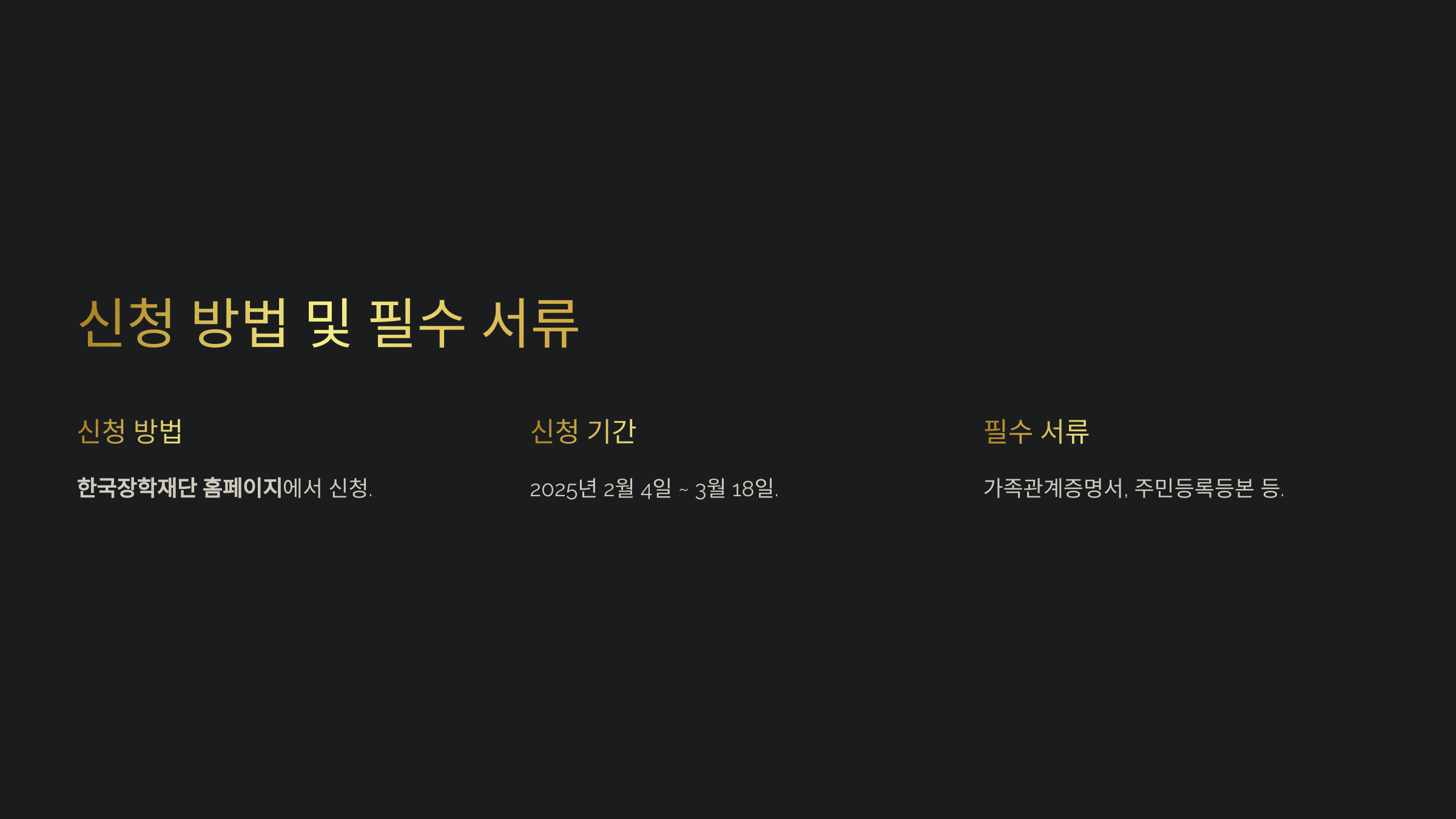 - 신청 방법: 한국장학재단 홈페이지에서 별도 신청 필요