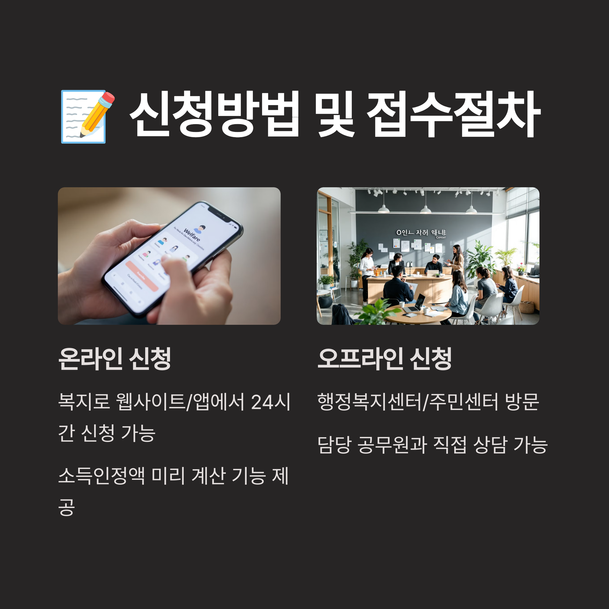 온라인과 오프라인 모두 장단점이 있으니 개인 상황에 맞게 선택하시면 돼요. 중요한 건 정확한 정보 제공과 빠른 신청이에요! 💻