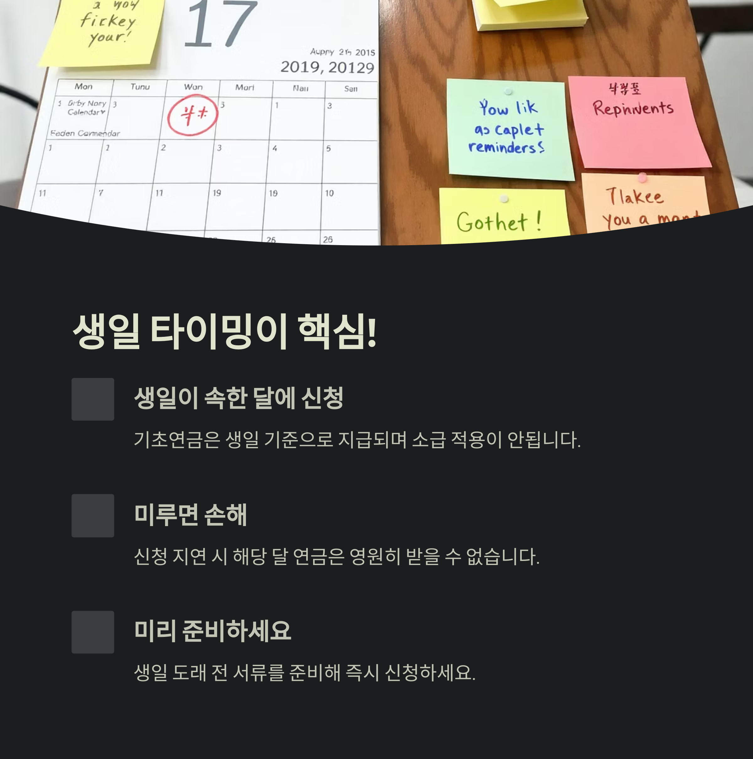 기초연금은 1년 내내 신청 가능하지만, 수급 개시는 생일 기준이라는 걸 꼭 기억해야 해요. 날짜 놓치면 돈도 날아가요! 📆