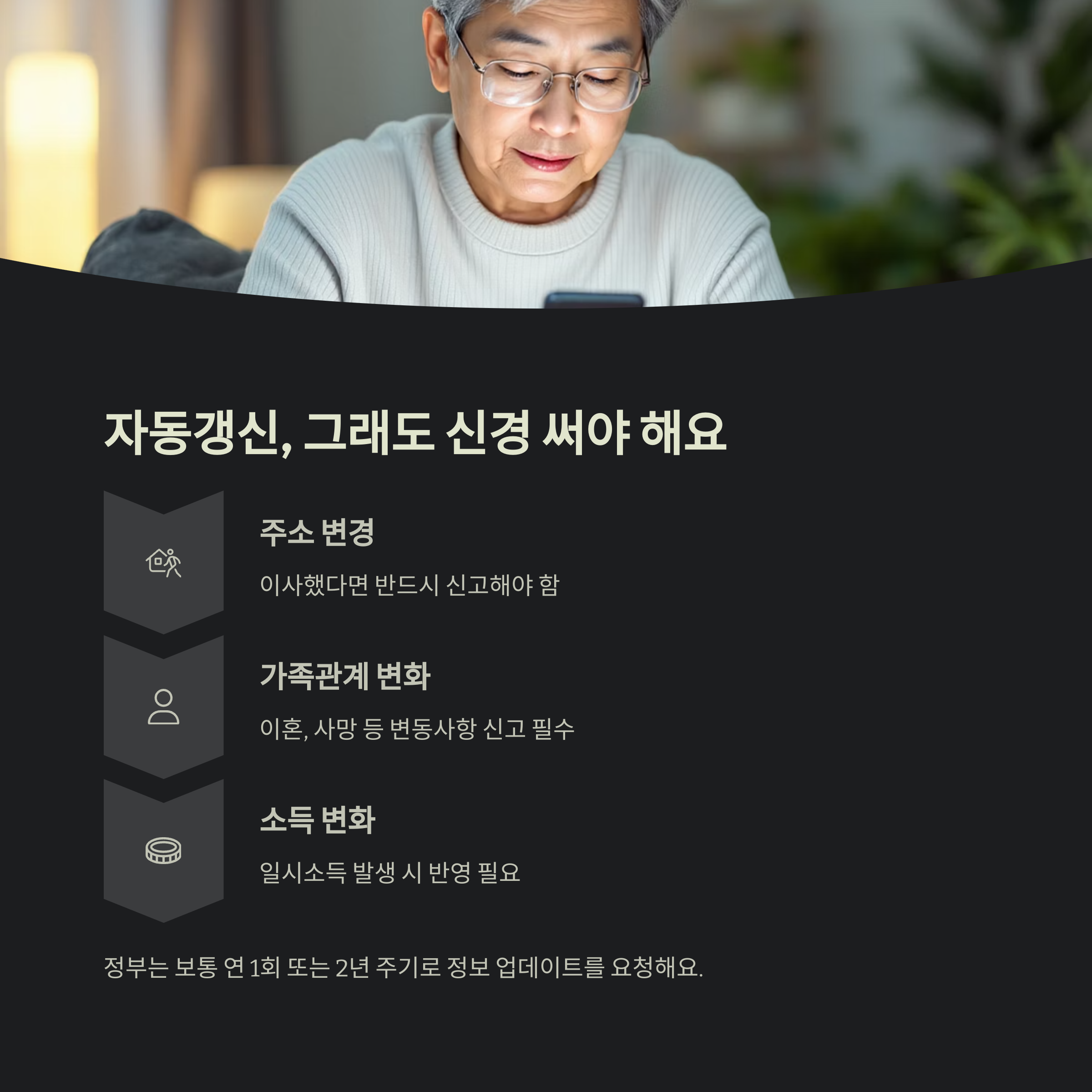 자동갱신은 편리하지만, 신고 의무가 따르는 제도이기도 해요. '자동이니 신경 안 써도 되겠지?' 하면 안 되고, 본인 상황 변화는 반드시 알려야 해요!