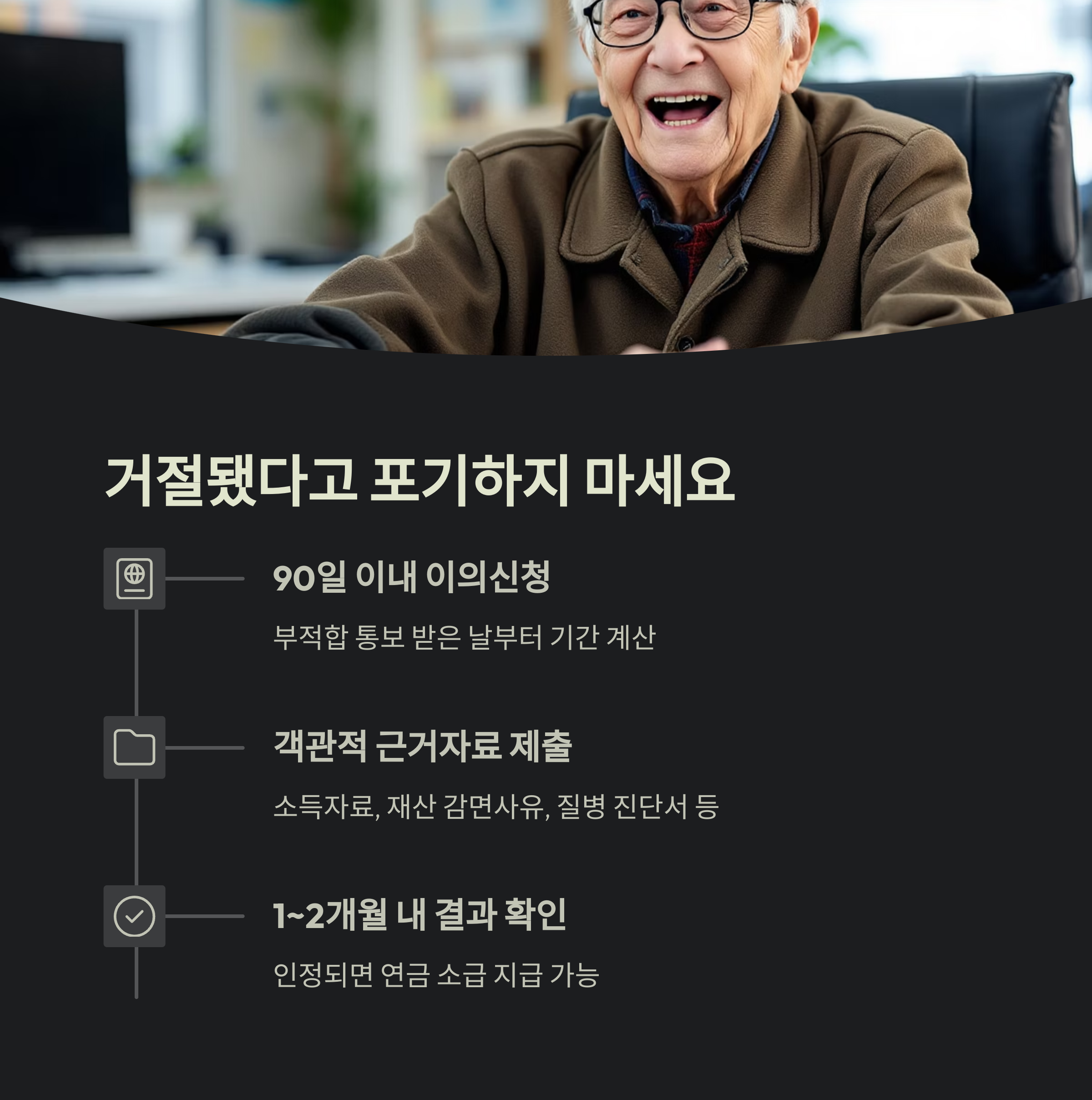 이의신청 후 결과는 약 1~2개월 내에 나오고, 인정되면 연금이 소급 지급될 수도 있어요. 정당한 사유가 있다면 꼭 정식 절차를 밟아보세요. 제도는 언제나 열려 있어요!