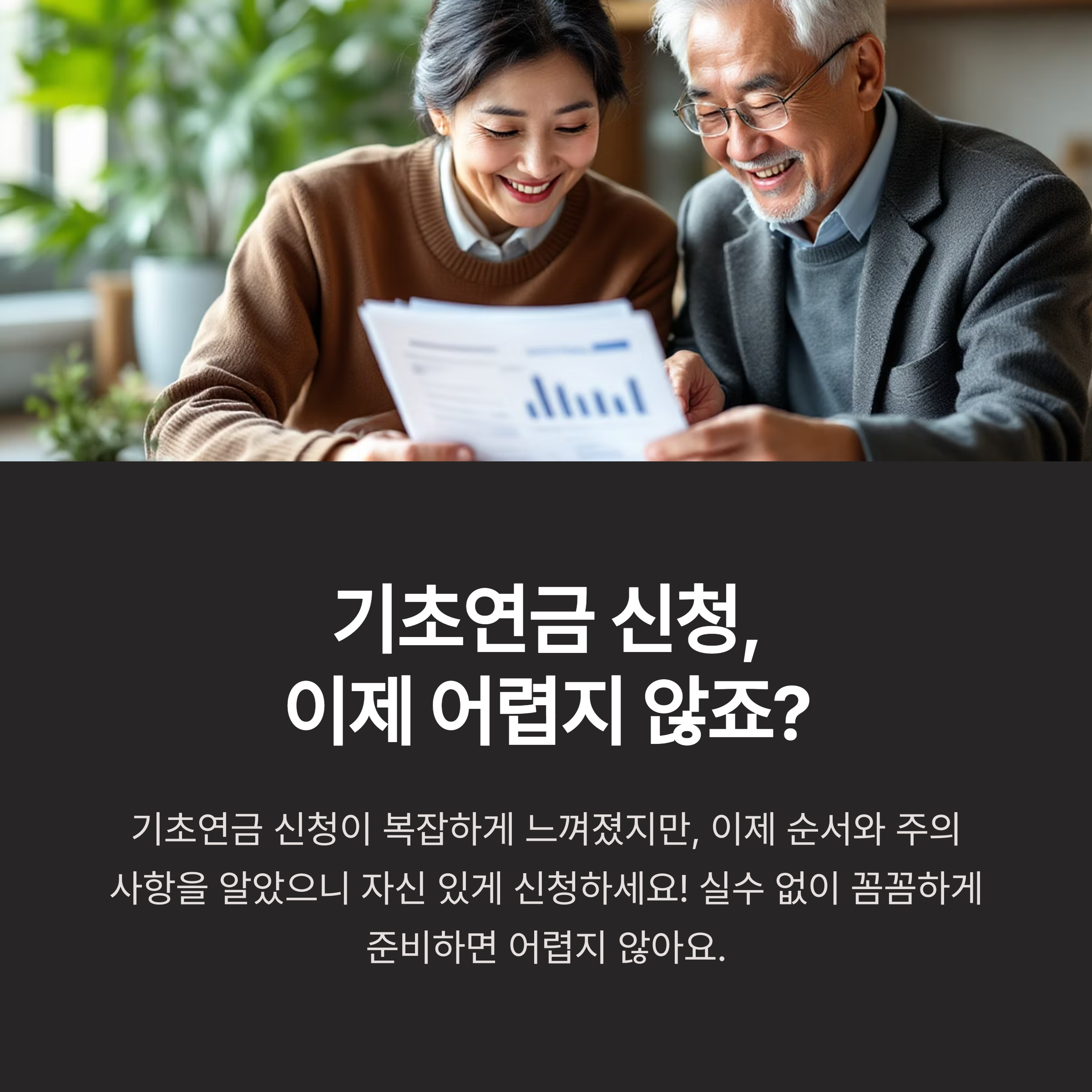 기초연금 신청이 어렵고 복잡하게 느껴지지만, 정확한 순서와 주의사항만 알고 있다면 생각보다 간단하게 끝낼 수 있어요. 📌
