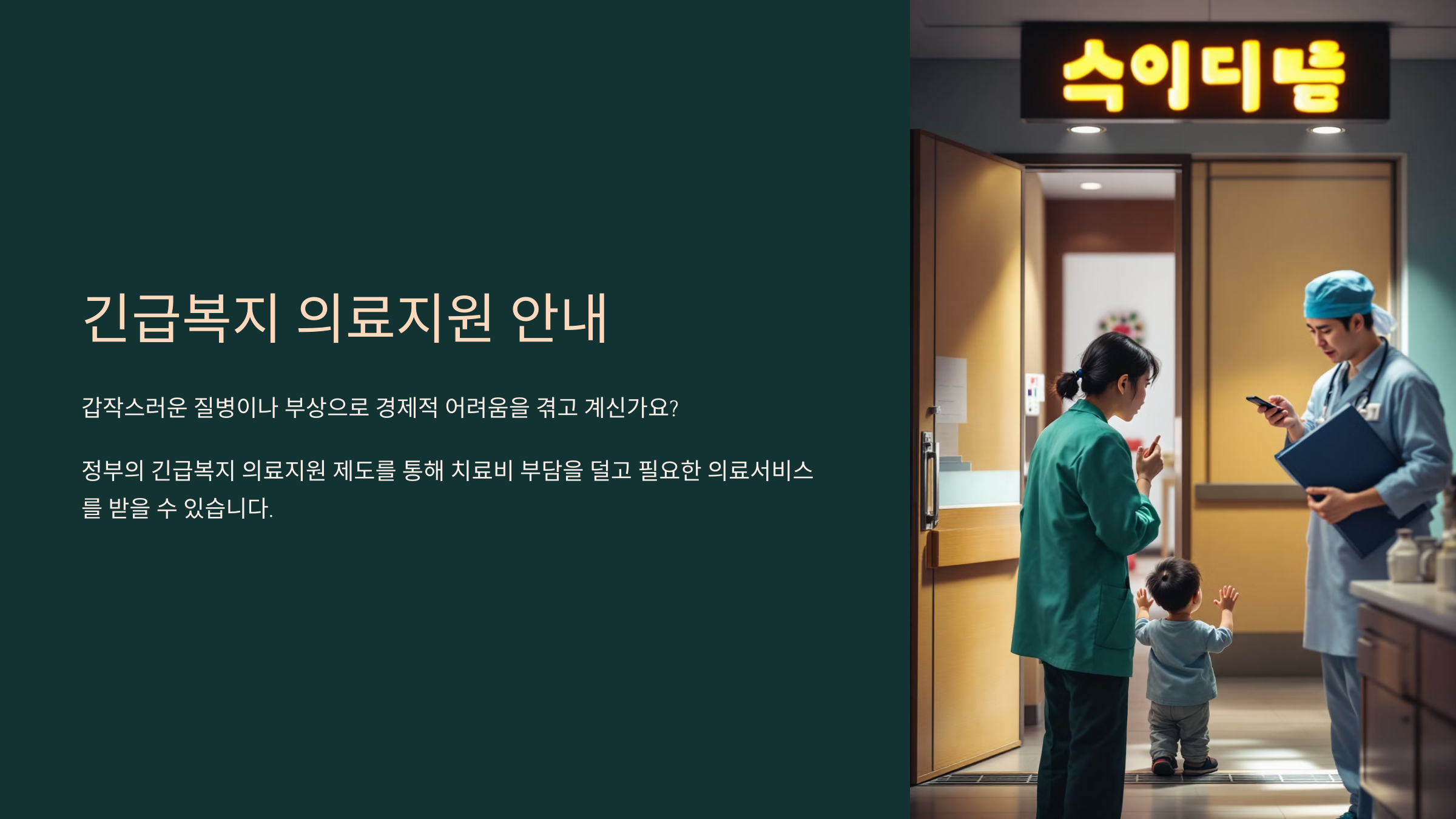 갑작스러운 질병이나 부상으로 인해 경제적으로 어려움을 겪고 있다면 긴급복지 의료지원을 신청할 수 있어요. 정부에서 제공하는 이 제도를 활용하면 치료비 부담을 덜고, 필요한 의료서비스를 받을 수 있어요.