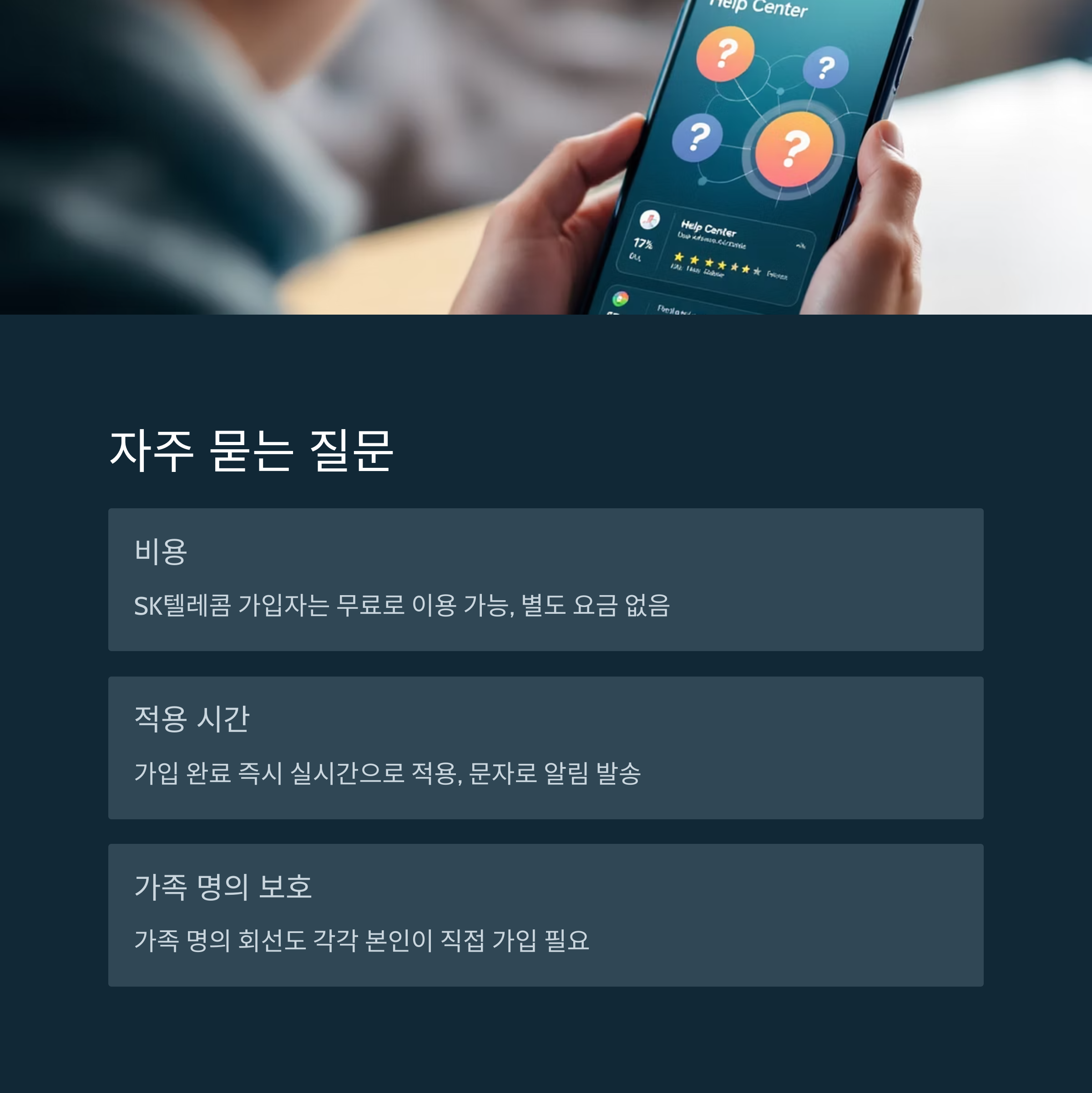 A2. 네, SK텔레콤 가입자라면 누구나 무료로 이용할 수 있어요. 별도의 월정액 요금이나 추가 비용이 없답니다.