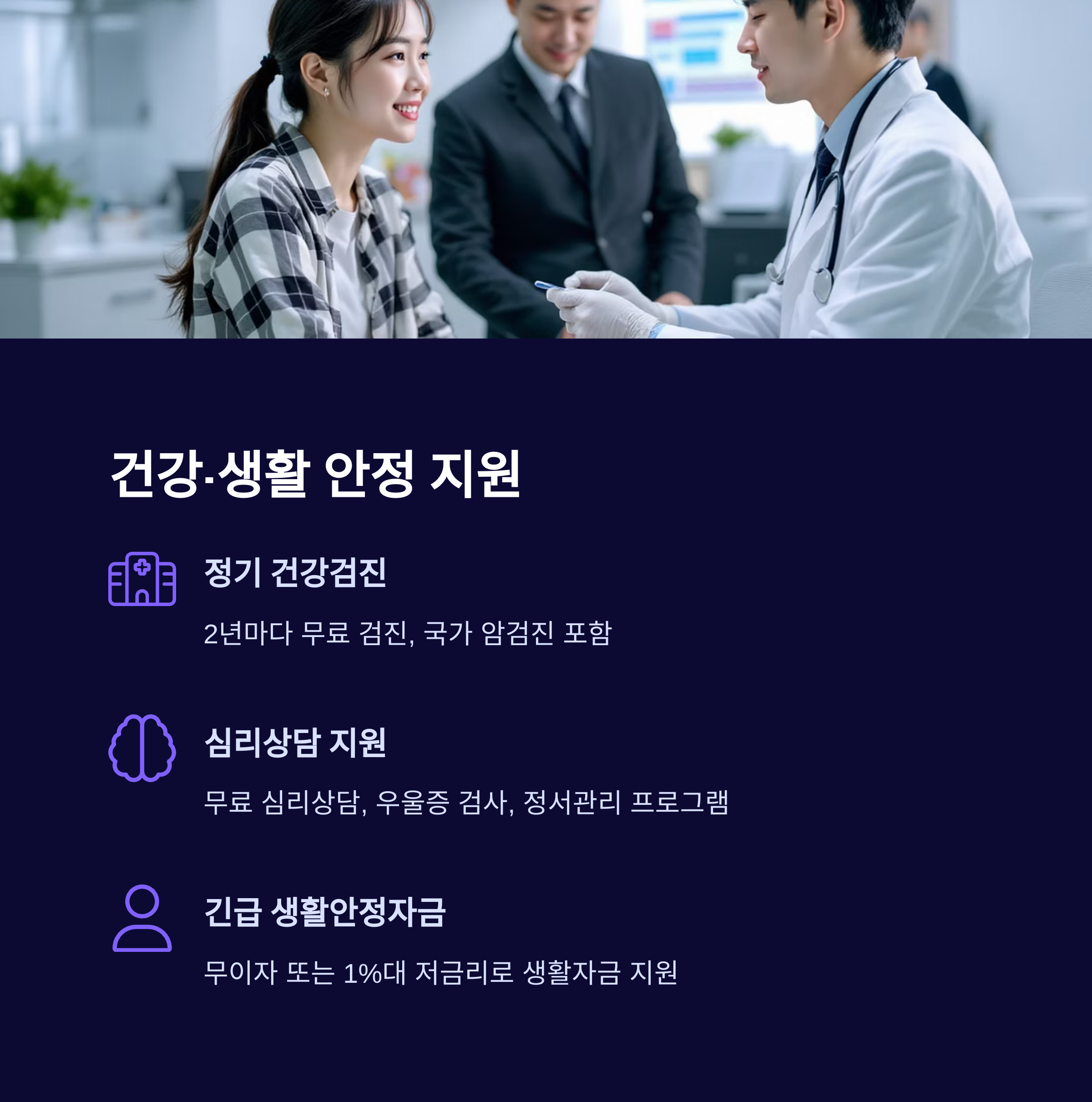 💊 아무리 돈을 잘 벌고 커리어를 쌓아도, 몸과 마음이 건강하지 않으면 오래 가기 힘들죠. 그래서 정부는 직장인을 위한 건강·정신·생활안정 복지에도 힘을 실어주고 있어요.