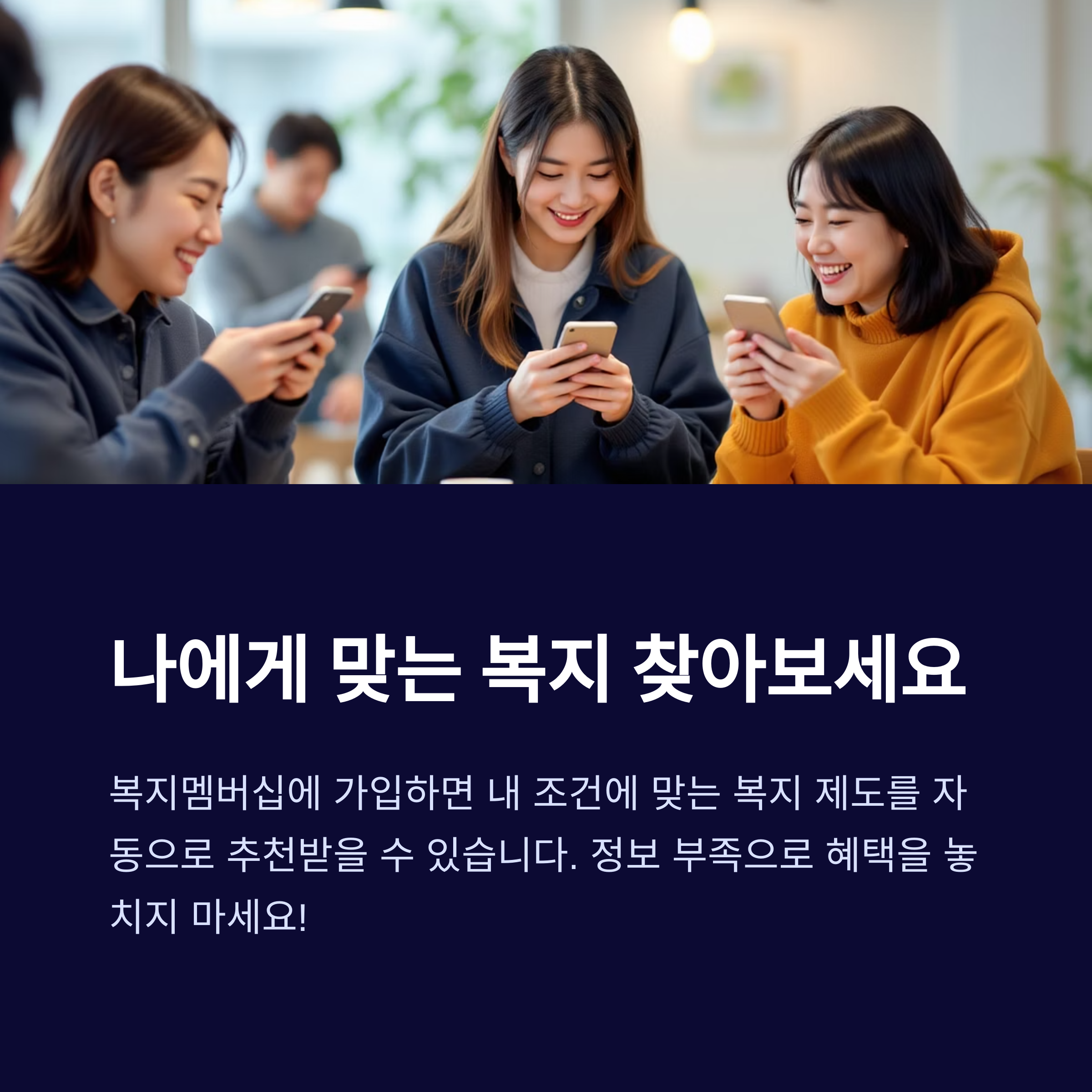 A8. 복지멤버십에 가입하면 내 조건에 맞는 복지 제도를 자동 추천해줘요. 문자 알림도 오고, 놓치지 않게 도와줘서 매우 유용해요!