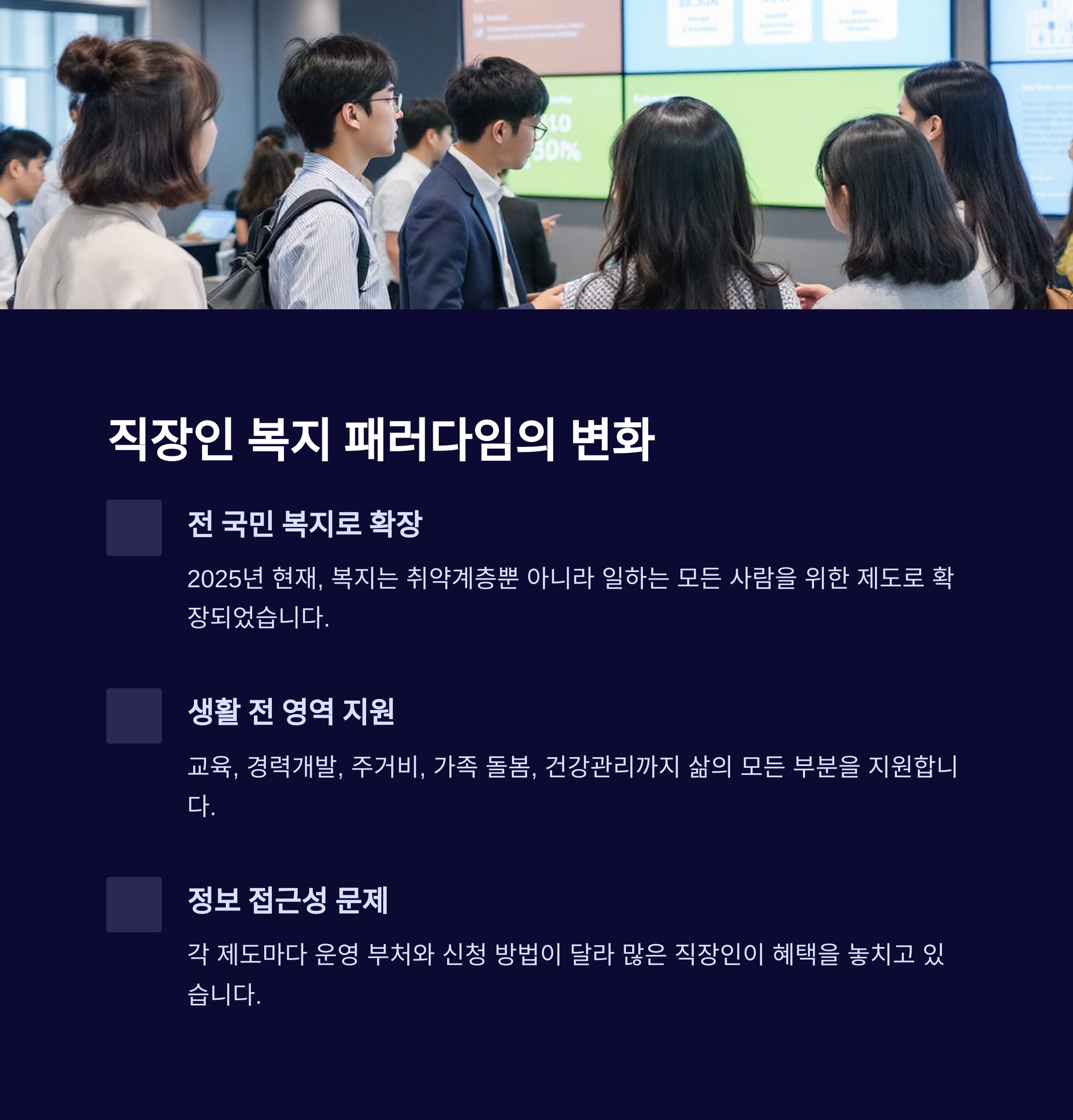 📖 정부의 복지제도라고 하면 대개 ‘기초생활수급자’나 ‘취약계층’을 떠올리기 쉬워요. 하지만 2025년 현재, 복지 패러다임은 직장인을 포함한 근로 대중 전체로 확장되고 있어요. ‘열심히 일하는 사람을 위한 복지’가 키워드가 되었죠.