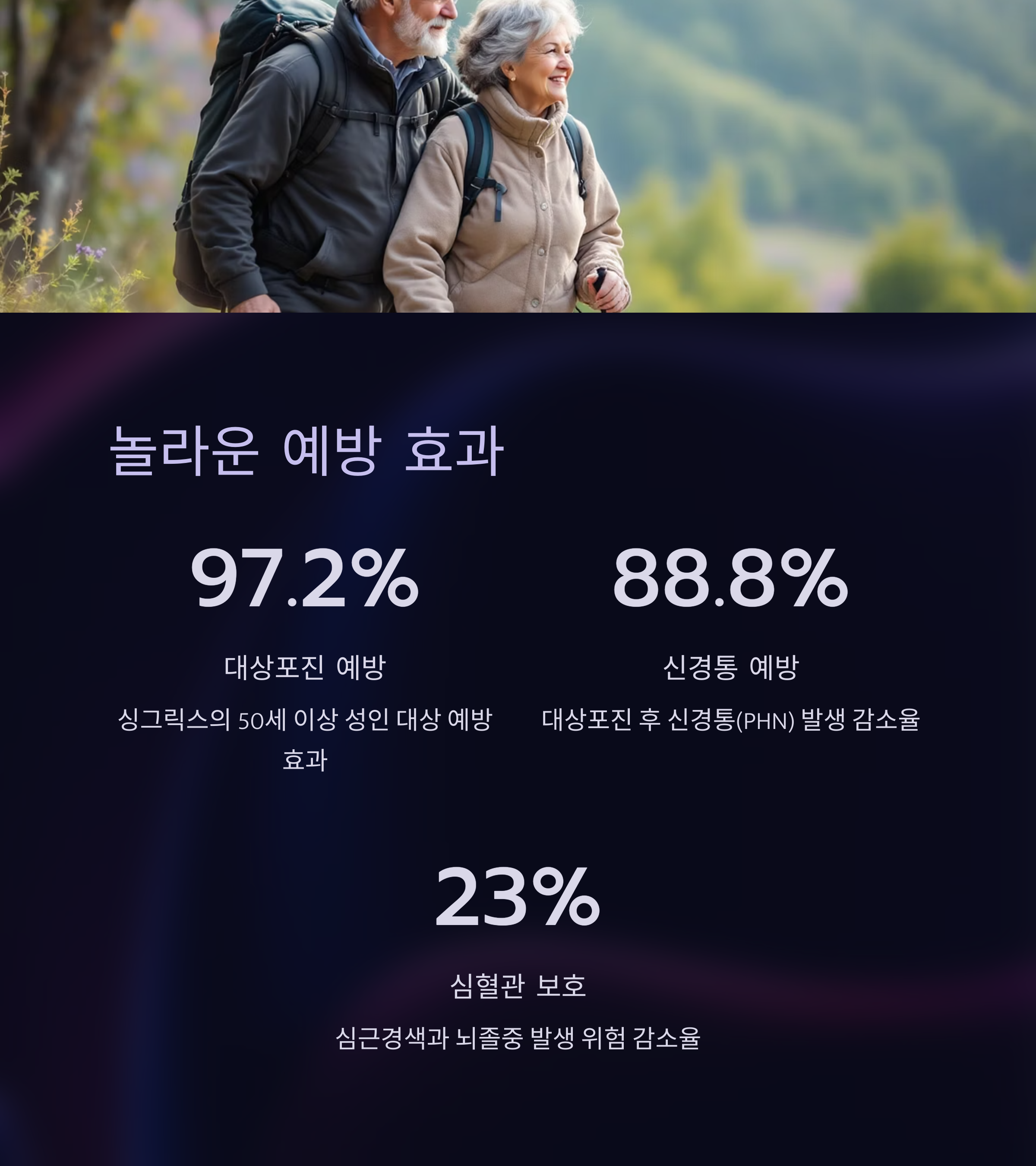 | 대상포진 예방 | 90-97% | 10년 이상 |