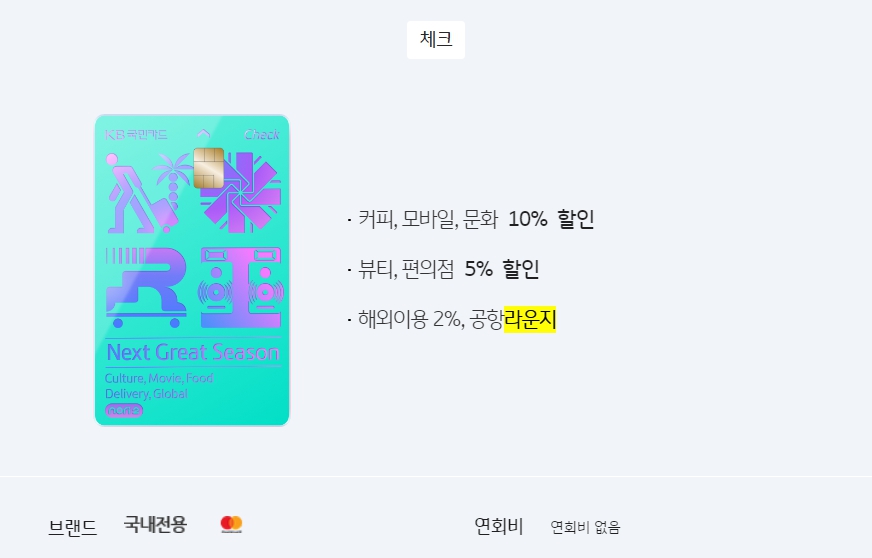 📌라운지 이용: 전월 30만원 이상 이용시 연간 최대 2회 무료 이용 가능.(현재 신규가입 불가함)