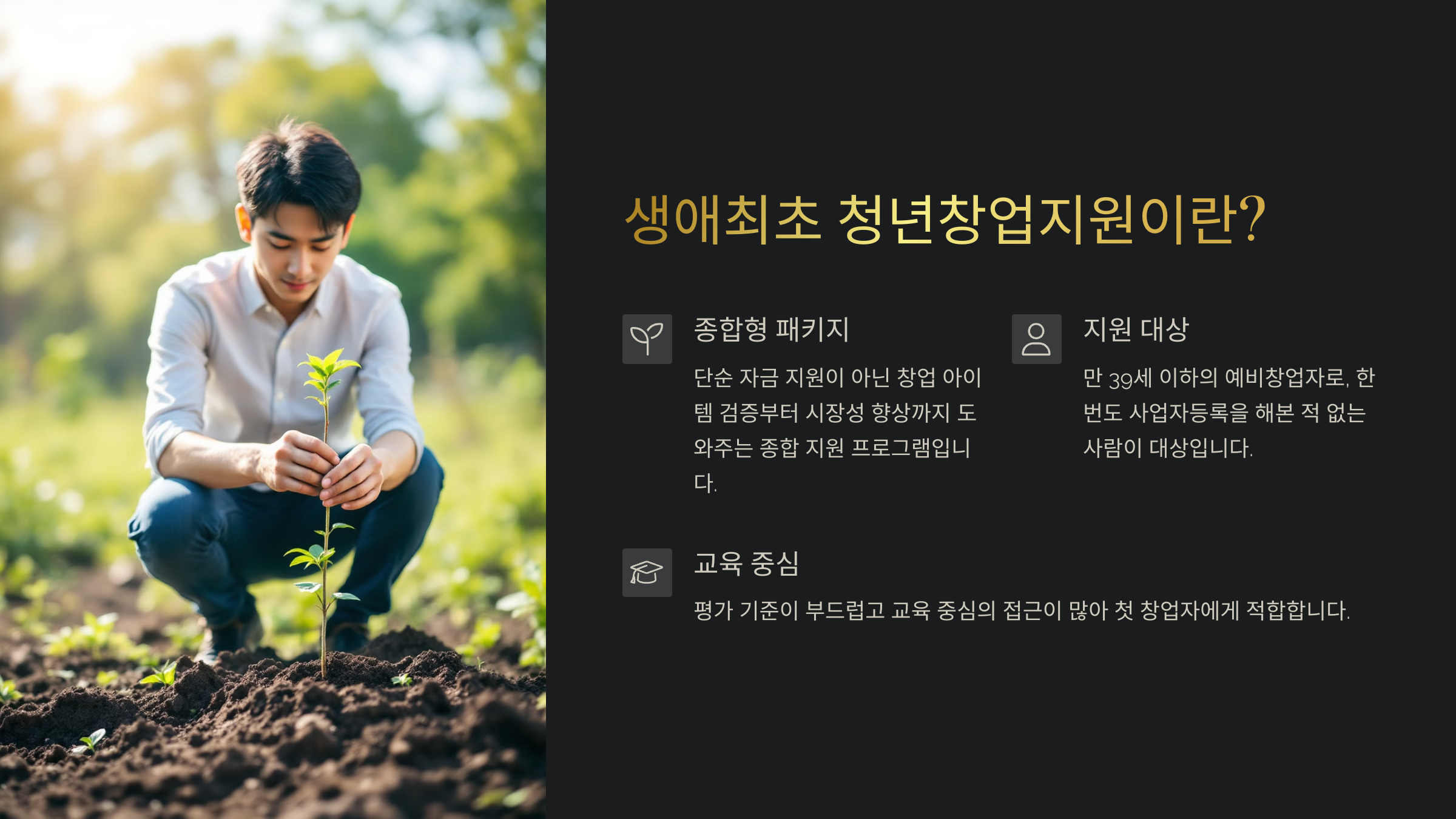 무엇보다 생애최초라는 점 때문에 평가 기준이 좀 더 부드럽고, 교육 중심의 접근이 많아요. 부담 없이 창업에 첫발을 디딜 수 있도록 구성돼 있어서, ‘시작이 두려운’ 청년에게는 정말 제격이에요!