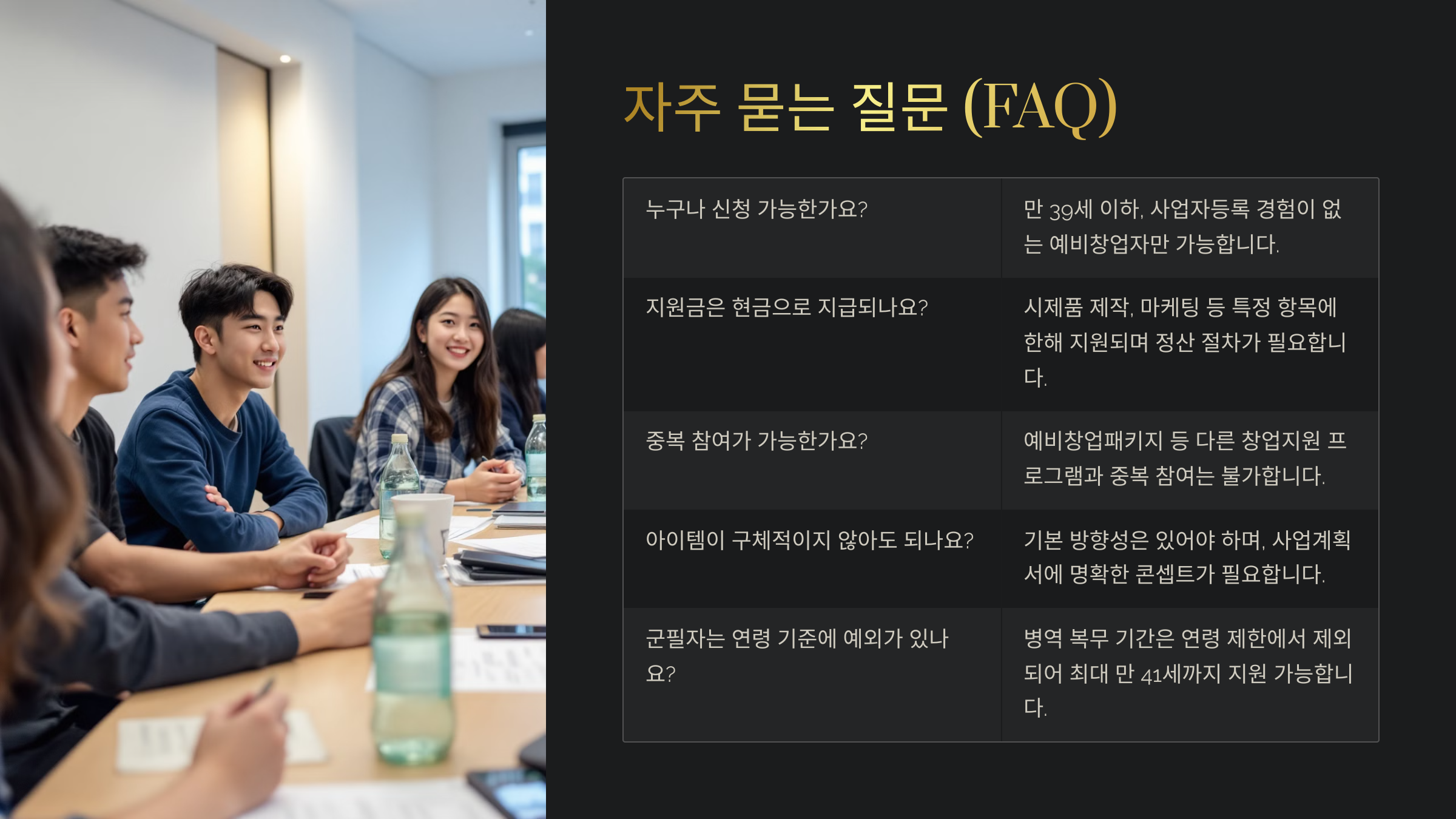 신청 전 준비 기간을 최소 2~3주 확보하는 걸 추천해요. 미리 아이템을 정하고, 사업계획서 틀을 짜두면 공고 떴을 때 훨씬 수월하니까요. 특히 피칭 영상이나 발표 자료를 요구하는 경우도 있으니, 너무 촉박하게 준비하면 힘들어요!