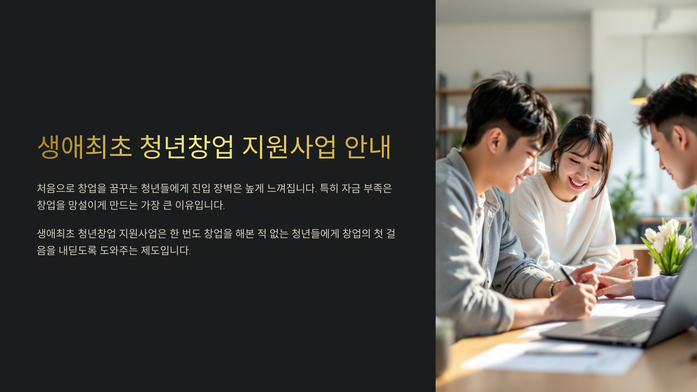 처음으로 창업을 꿈꾸는 청년들에게, 진입 장벽은 생각보다 높게 느껴지죠. 특히 ‘자금 부족’은 창업을 망설이게 만드는 가장 큰 이유 중 하나인데요. 이럴 때 활용하면 좋은 제도가 바로 생애최초 청년창업 지원사업이에요! 🔥