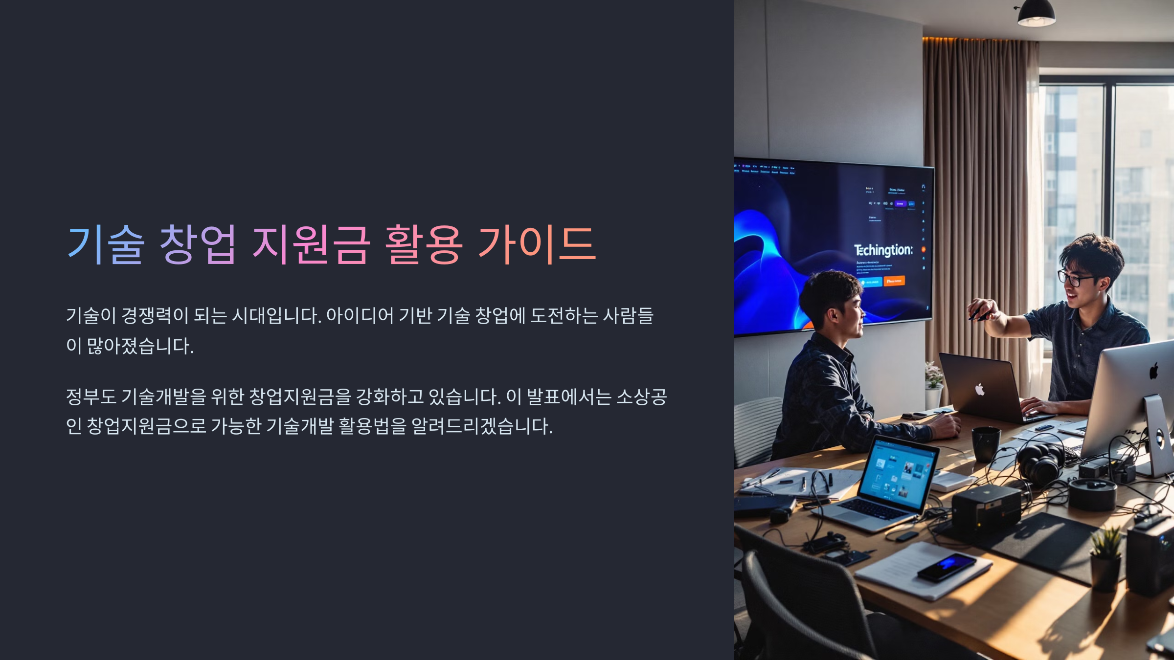 기술 창업 지원금은 단순 장비나 홍보가 아닌 실질적인 개발 과정