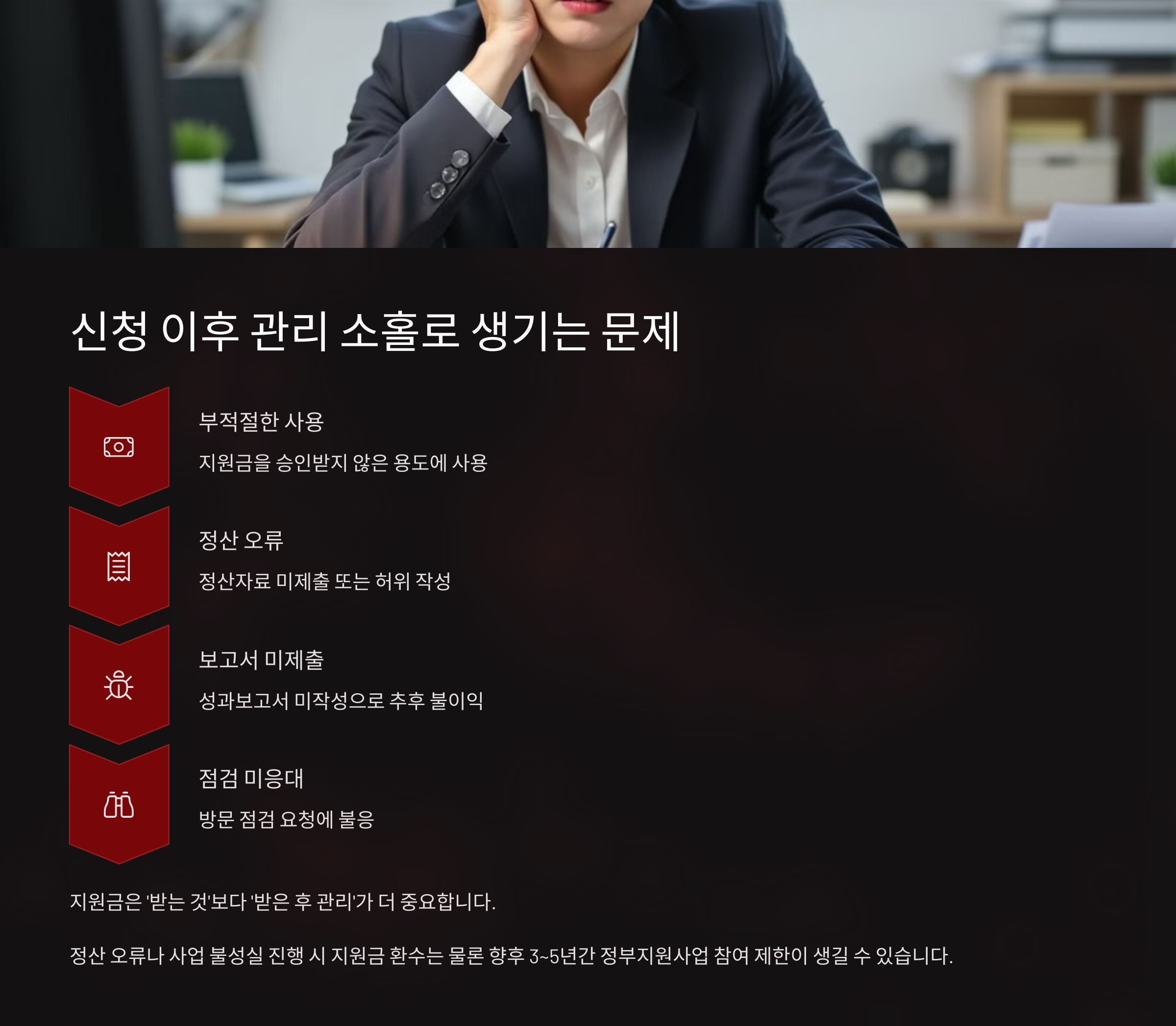 는 물론이고, 향후 3~5년간 정부지원사업 참여 제한이 생길 수 있어요 😰