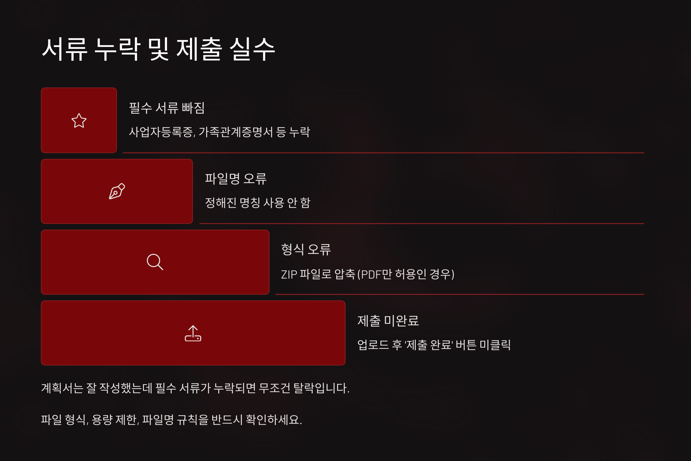 서류 누락, 자격조건 착오, 파일 오류, 마감시간 착각, 이런 사소해 보이는 것들이 실제로 심사에서 탈락의 이유가 되곤 해요. 그래서 유의사항을 미리 정확히 아는 것이 무조건 유리해요.
