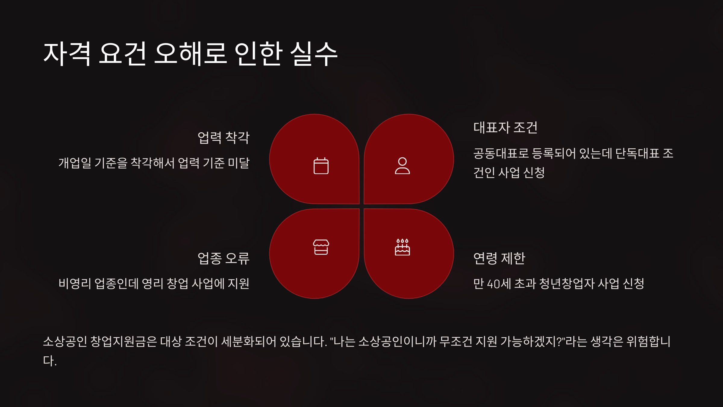 | 2위 | 자격요건 오류 | 업력/나이 착오 |