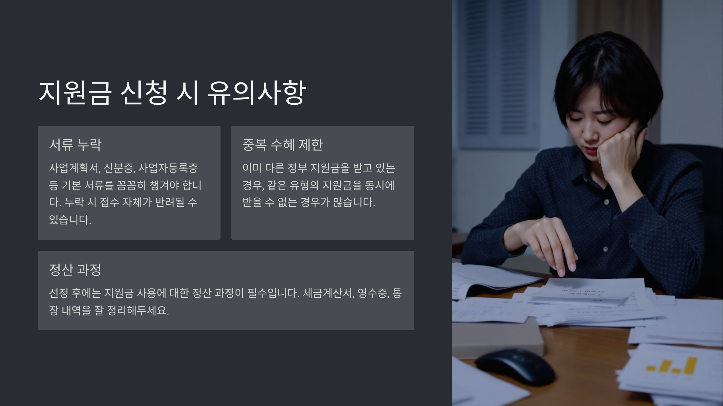 | 서류 누락 | 신청 반려 | 체크리스트 활용 |