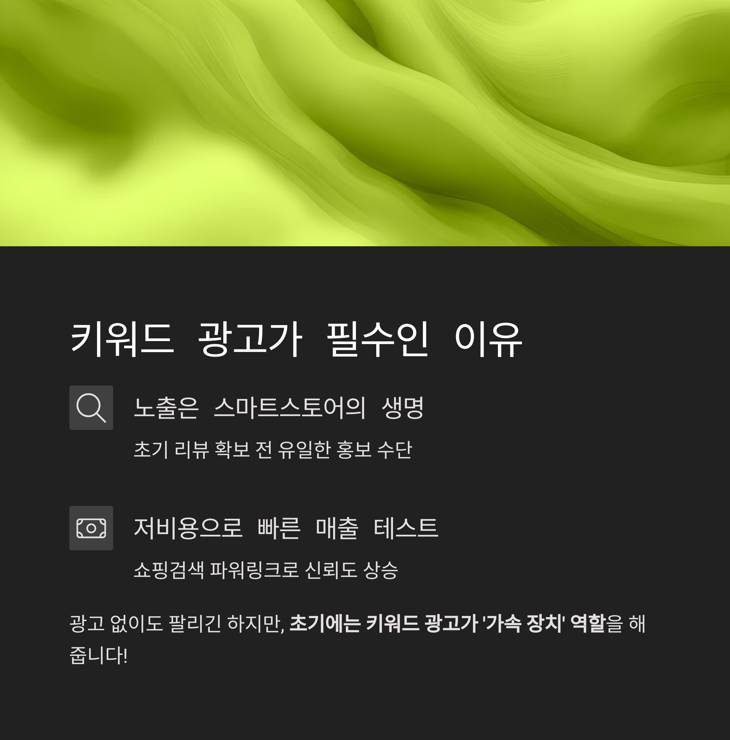 광고 없이도 팔리긴 하지만, 초기에는 키워드 광고가 ‘가속 장치’ 역할을 해준답니다!