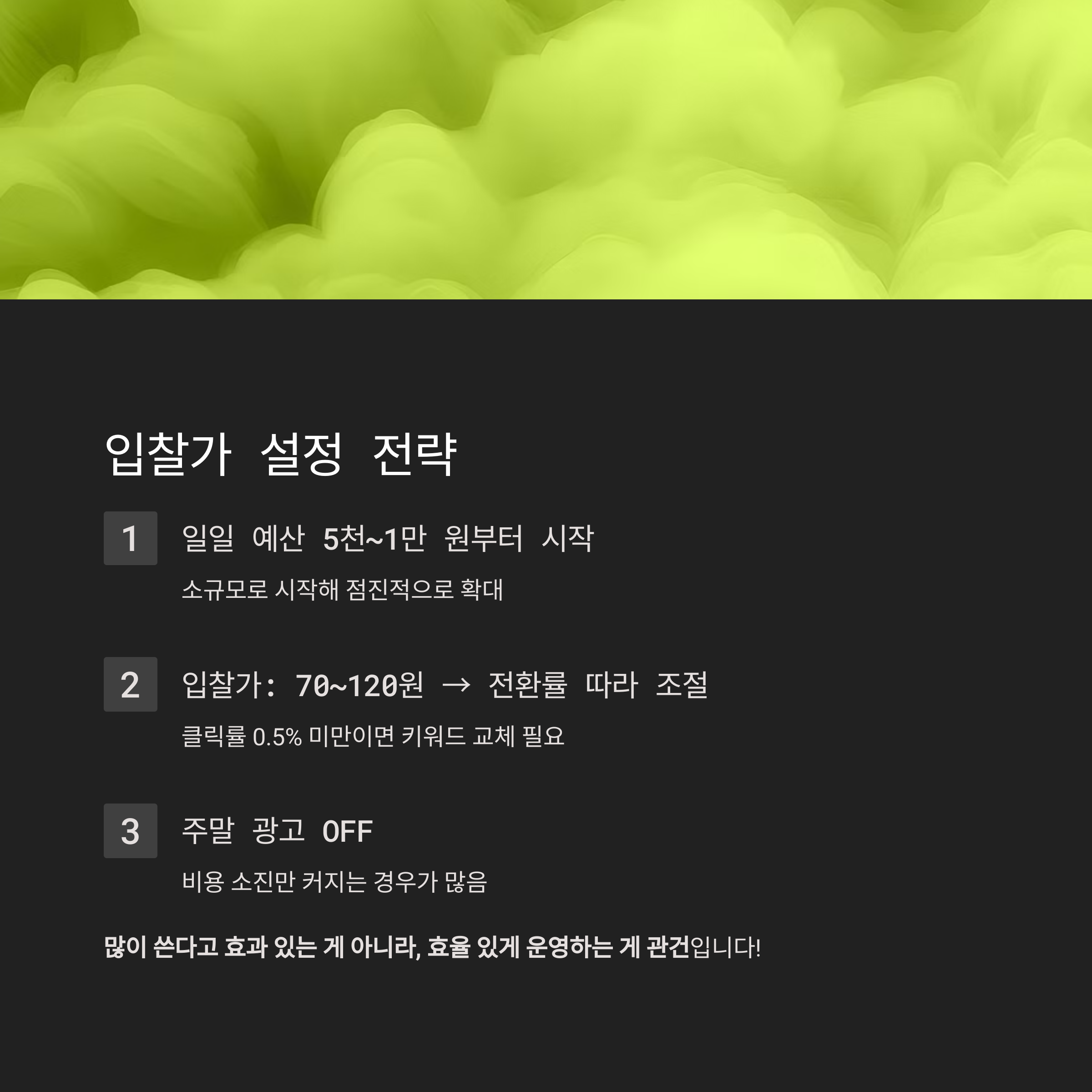 • 📈 입찰가: 70~120원 → 전환률 따라 조절