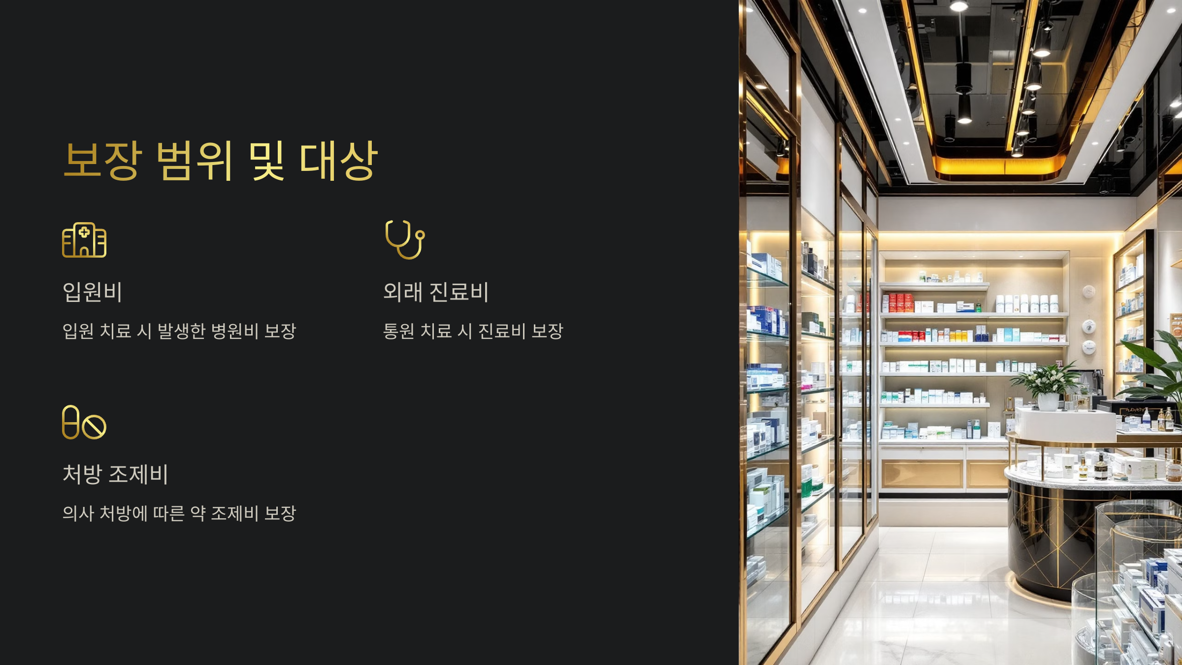 | 처방 조제비 | 의사 처방에 따른 약 조제비 보장 |