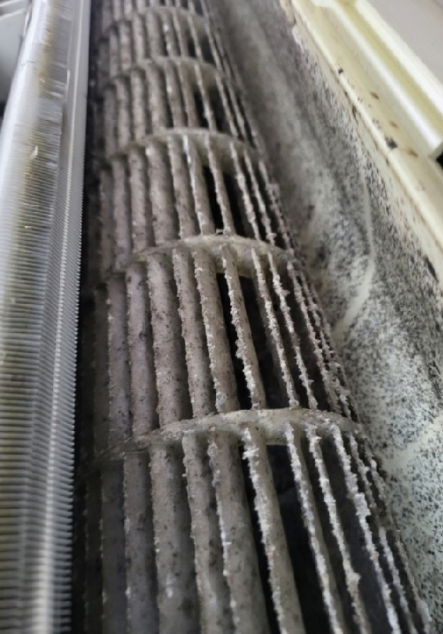 아래의 청소하지 않은 에어컨의 상태를 보세요.
