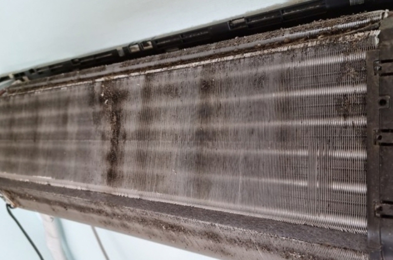 아래의 청소하지 않은 에어컨의 상태를 보세요.
