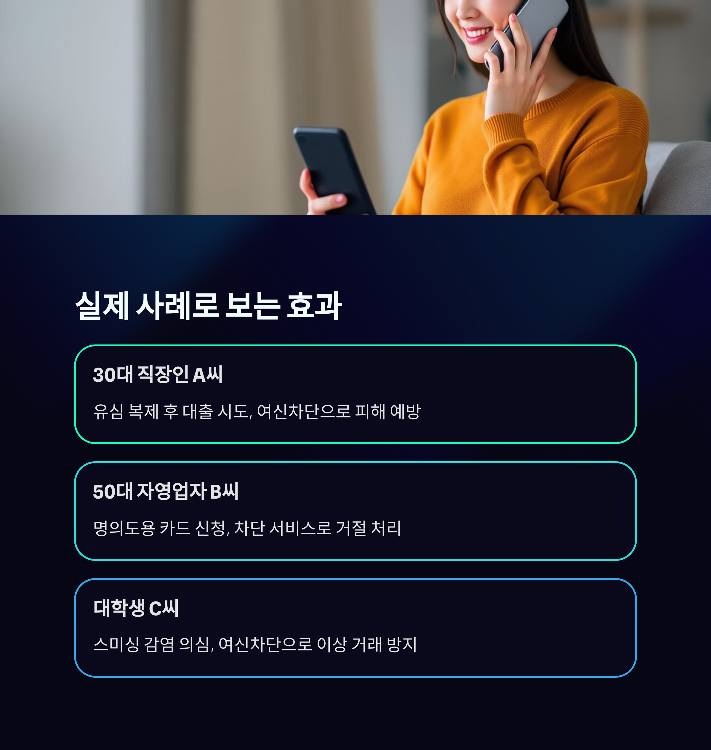 이처럼 실제 사례에서도 여신거래안심차단서비스는 실제 피해를 막아주는 실질적인 보안 수단이라는 점이 입증되고 있어요!