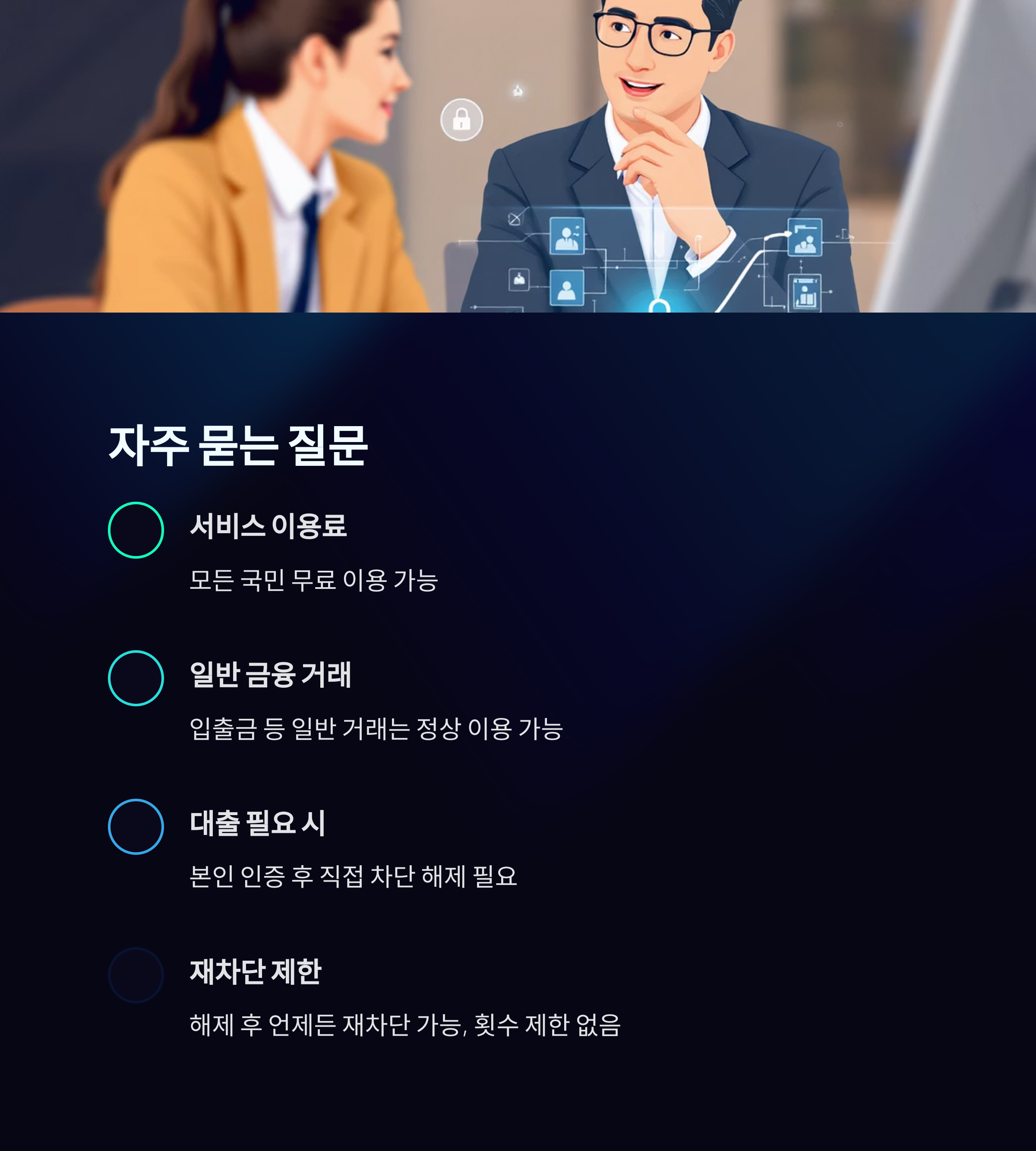 | 차단 대상 | 대출, 카드, 신용조회 등 여신 거래 |