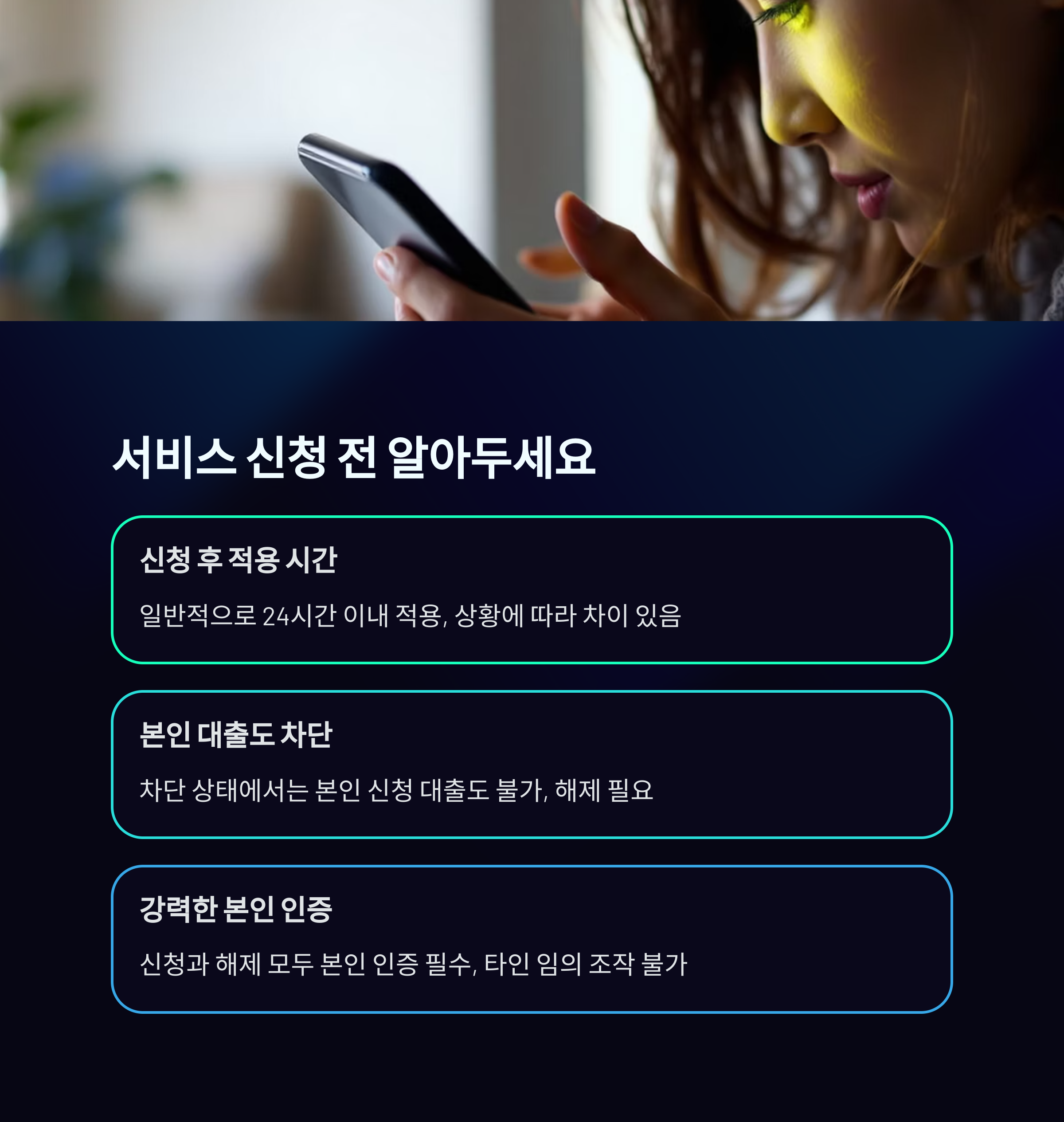 | 차단 대상 | 대출, 카드, 신용조회 등 여신 거래 |