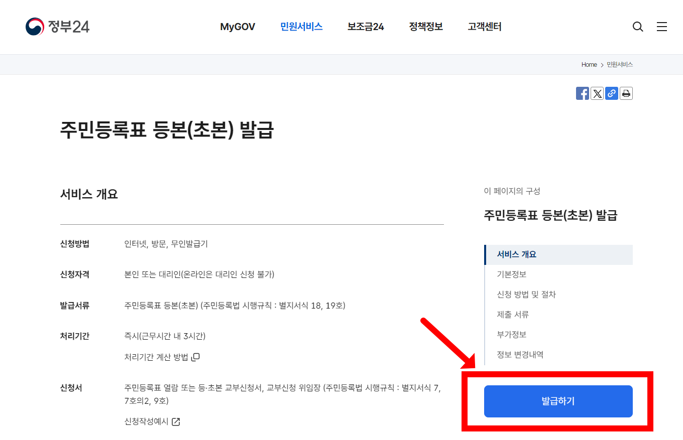 📌 주민등록등본(초본) 발급 서비스 검색
