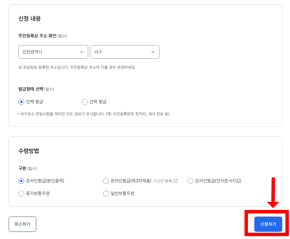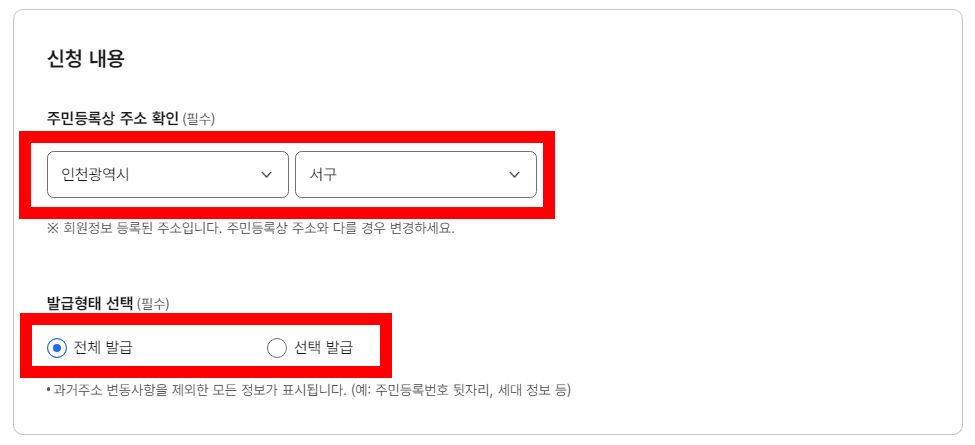 발급 시 불필요한 개인정보는 비공개 옵션을 선택하여 개인정보 유출을 방지할 수 있습니다. 예를 들어, 가족 구성원의 정보를 비공개로 설정할 수 있습니다.