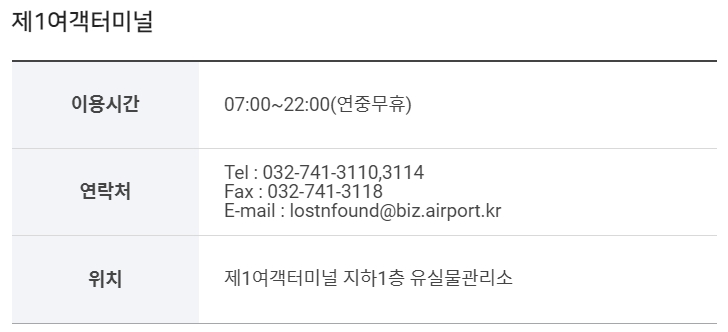 📌 또 다른 비상시 방안으로는 인천공항 유실물센터에 문의하는 것입니다. 만약 차량 내부에 귀중품을 두고 내렸다면, 유실물센터에서 보관하고 있을 가능성이 있습니다. 센터의 운영시간은 연중무휴 24시간이므로 아래와 같이 언제든지 방문 또는 전화로 문의하실 수 있습니다.