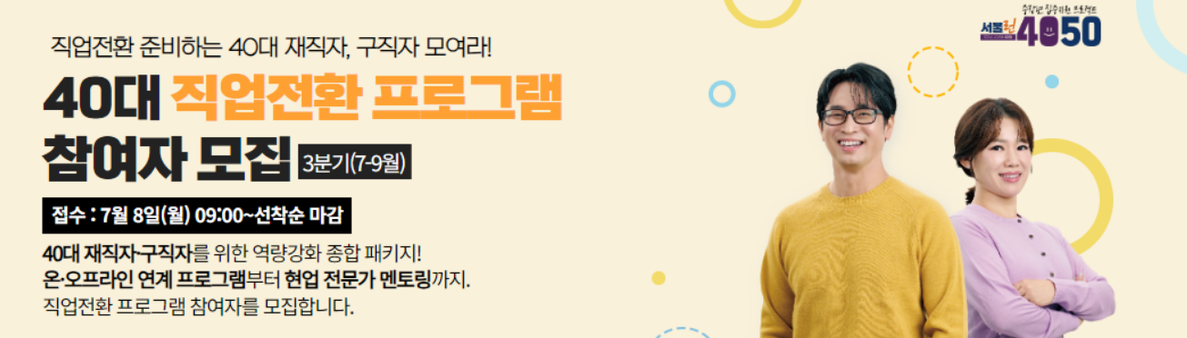급변하는 환경 속에서 고용불안에도 시달리고, 아래로는 청년, 위로는 어르신 세대에 비해 상대적으로 정책 대상에서 소외되는 중장년층을 위한 공공일자리를 마련하고자 서울시에서 내놓은 서울런 4050 정책에 대해 알아보겠습니다. 서울런 4050은 일자리와 역량은 높이고 미래 걱정은 줄인다'는 목표로 직업교육, 일자리 지원, 디지털 역량 강화, 노후준비 등을 지원하는데, 많은 도움을 받으시길 바랍니다.