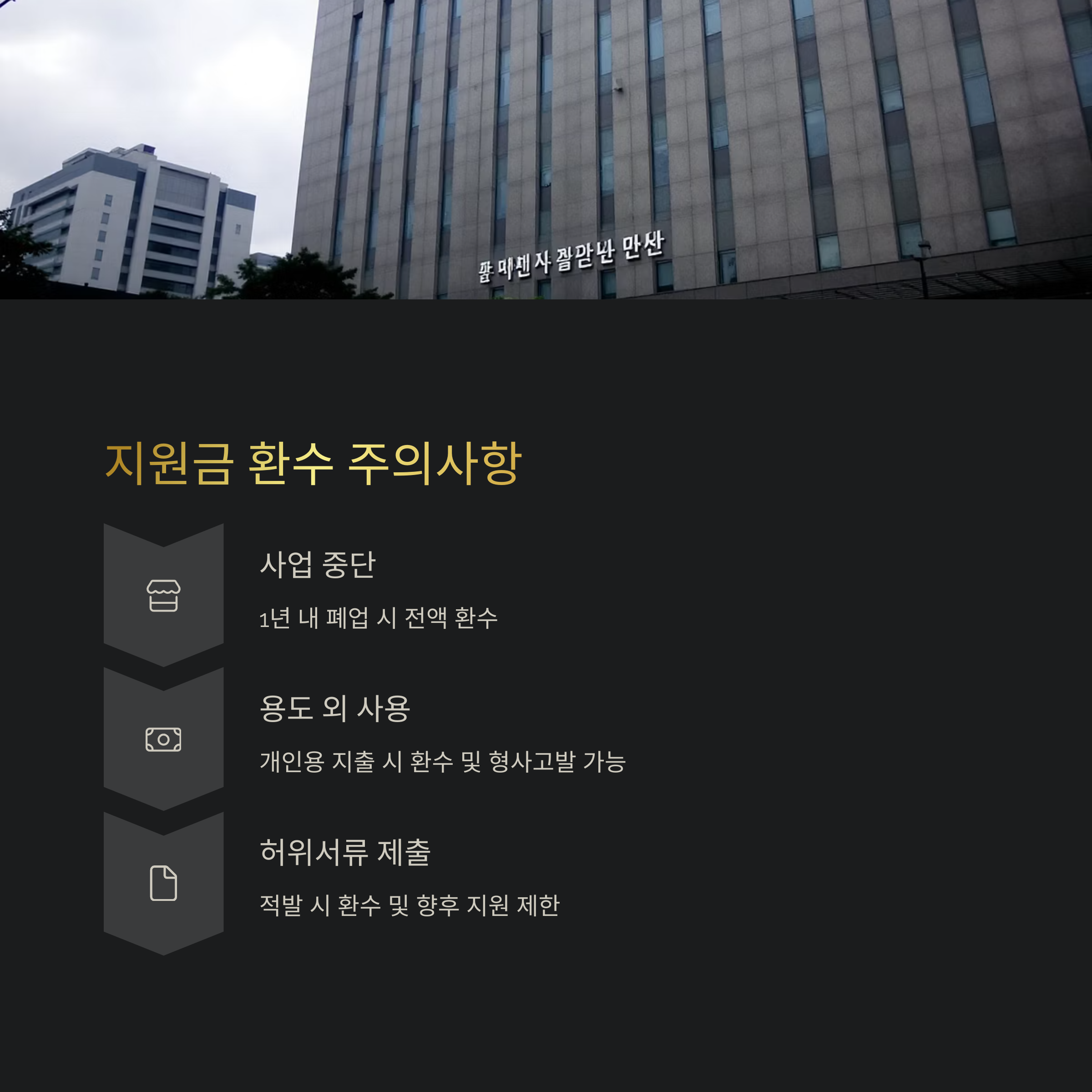 | 허위서류 제출 | 적발 시 향후 지원 제한 |
