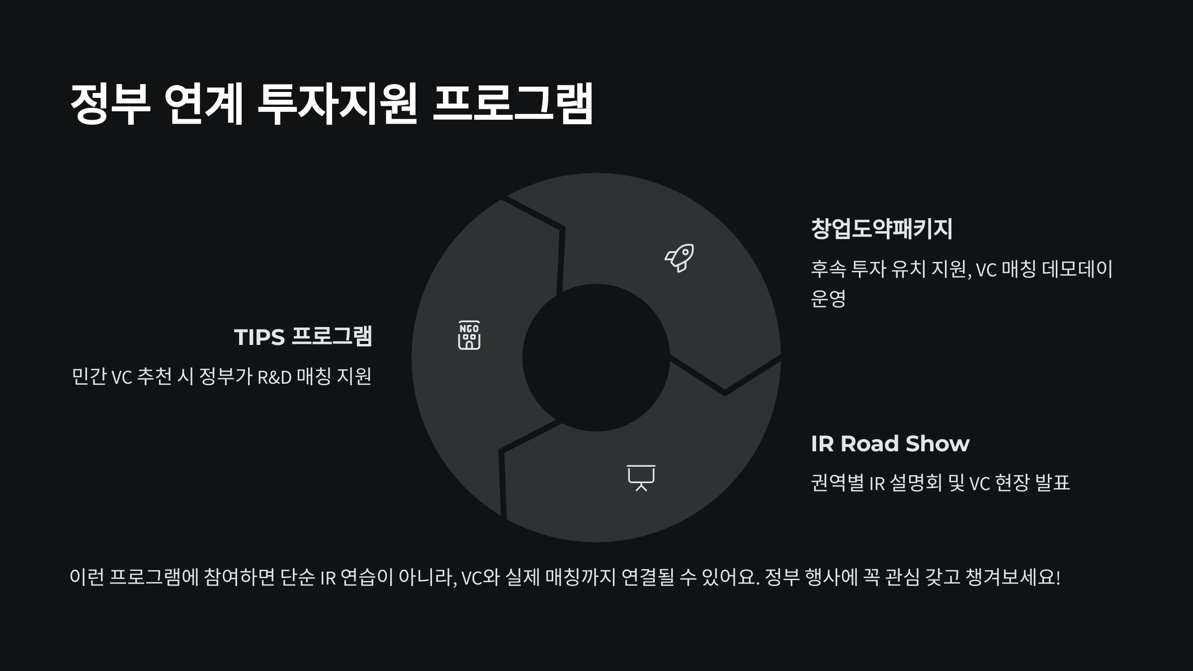 이런 프로그램에 참여하면 단순 IR 연습이 아니라, VC와 실제 매칭까지 연결될 수 있어요. 정부 행사에 꼭 관심 갖고 챙겨보세요!