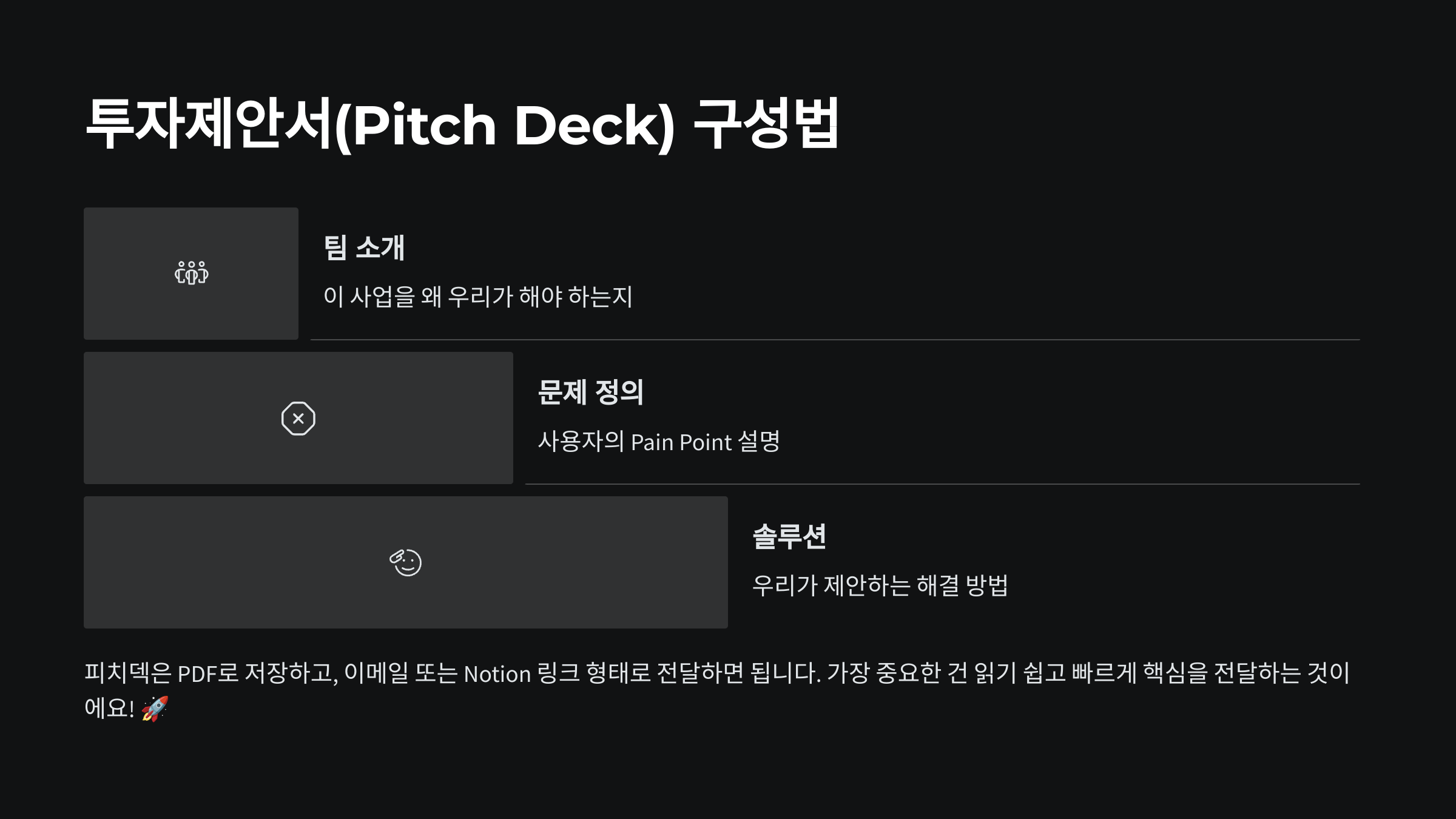 🖼️ 2025년 기준 Pitch Deck 구성 10장