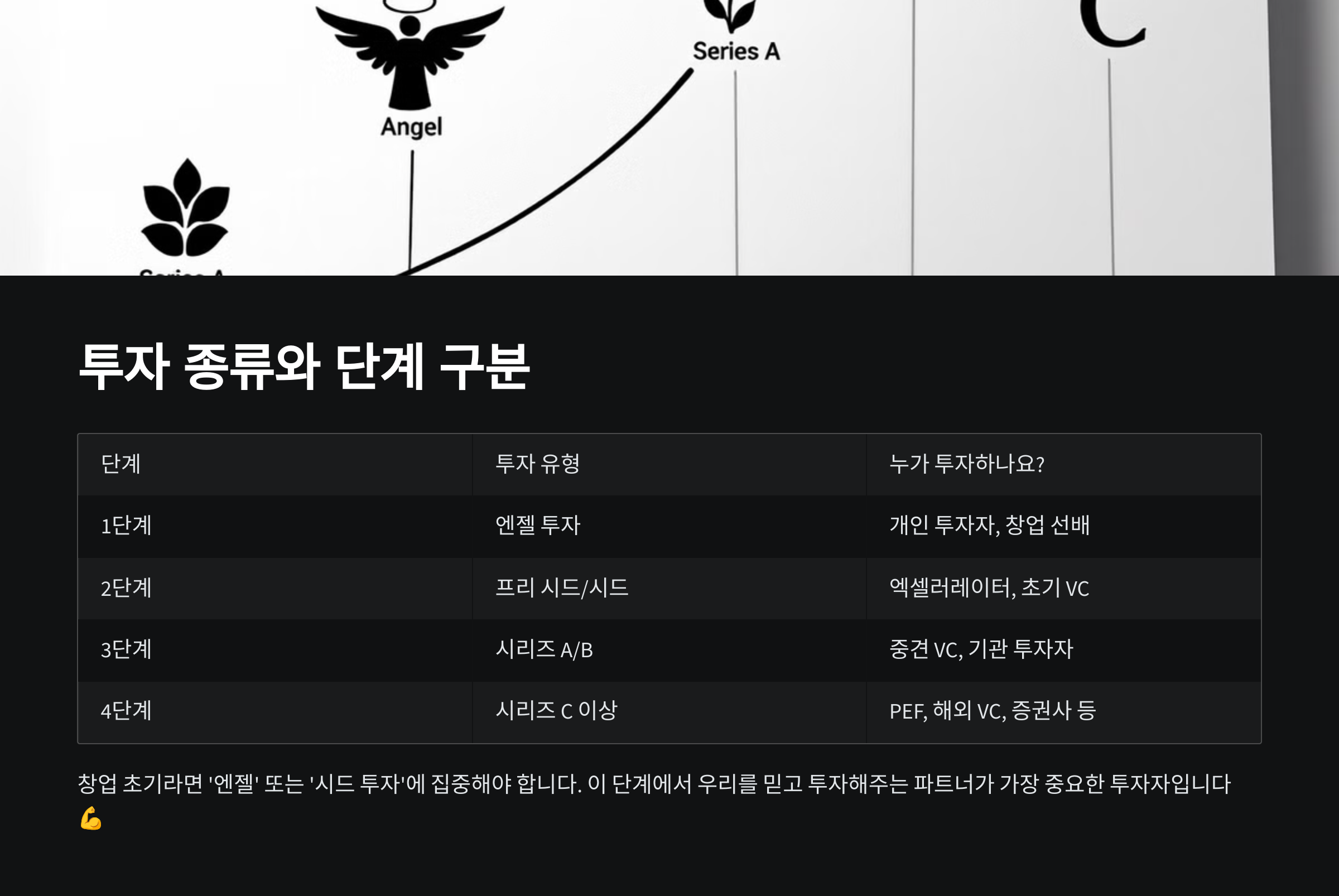 창업 초기라면 ‘엔젤’ 또는 ‘시드 투자’에 집중해야 해요. 이 단계에서 우리를 믿고 투자해주는 파트너가 가장 중요한 투자자랍니다 💪