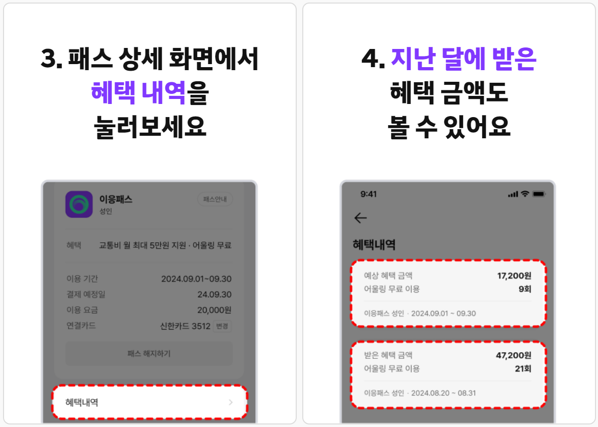이응패스는 선출금 후 환급 시스템으로 운영됩니다. 매월 사용한 교통비는 다음 달 3일에 청구되며, 이후 지원 금액이 환급됩니다.