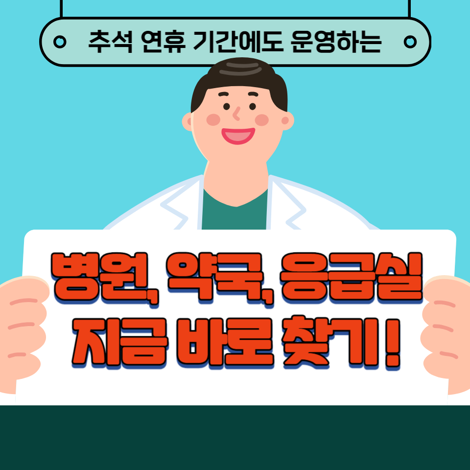 추석 연휴 기간에 예기치 못한 질병이나 갑작스러운 응급 상황이 발생할 경우, 운영 중인 병원이나 약국을 찾기가 쉽지 않을 수 있습니다.