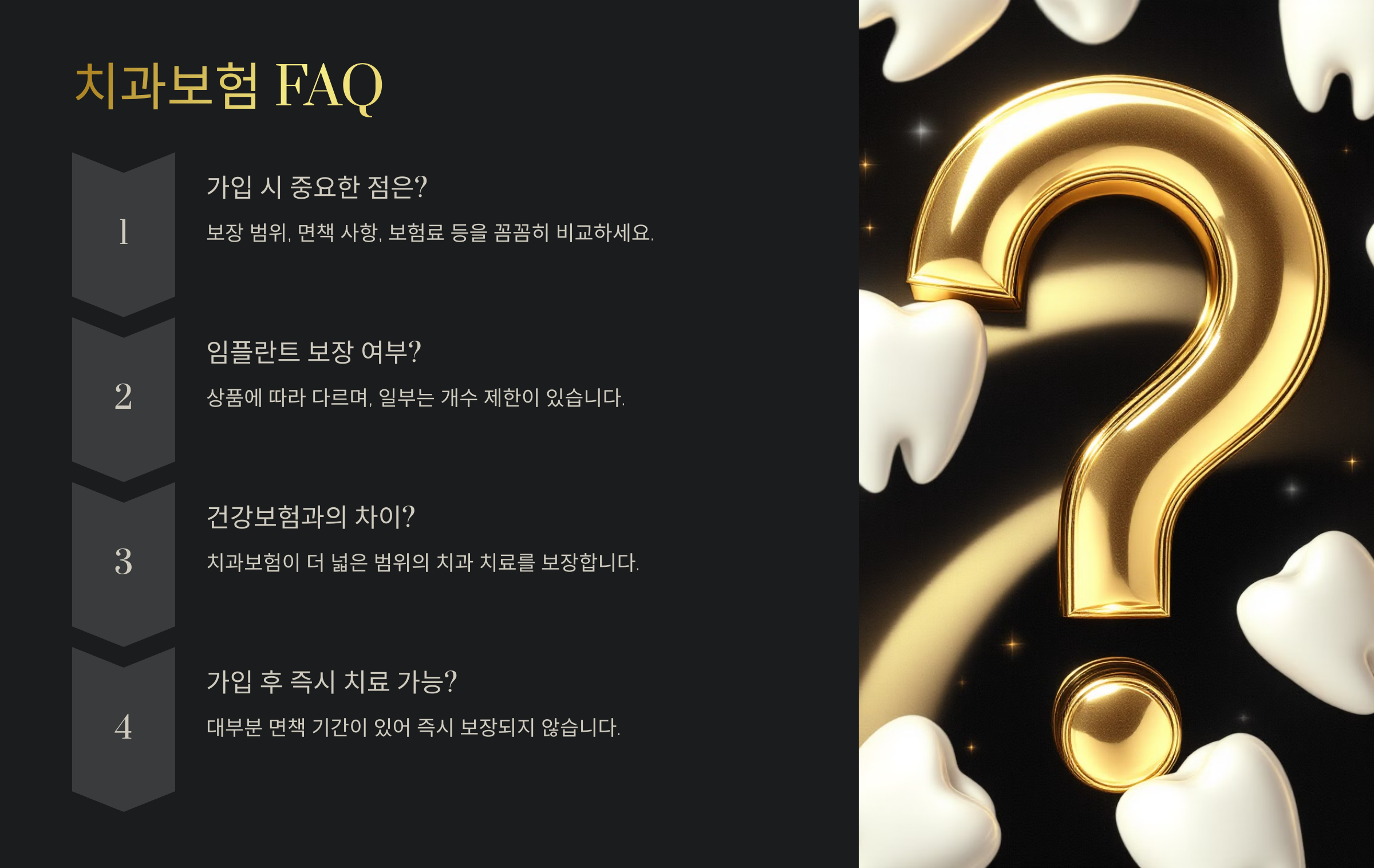 1. 💡 현재 치아 상태 확인: 치아 상태에 따라 보험 가입이 제한될 수도 있어요. 가입 전 치과 검진을 받는 게 좋아요.