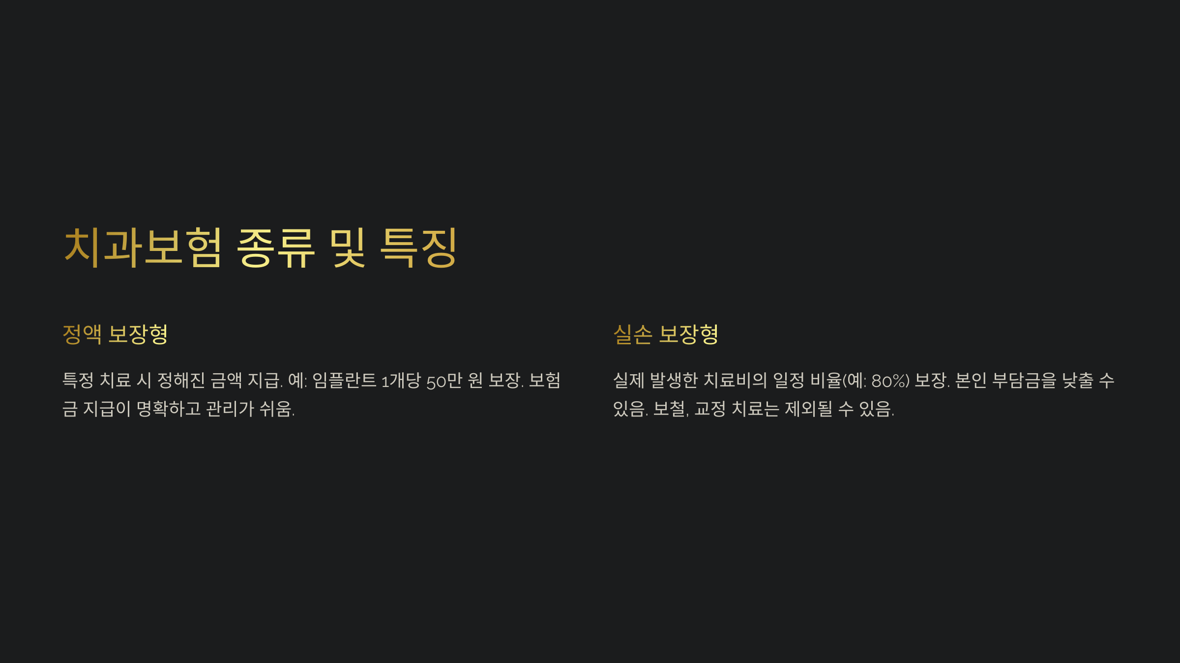 이제 본격적으로 치과보험의 종류와 보장 내용, 가입 시 주의할 점 등을 살펴보겠습니다.